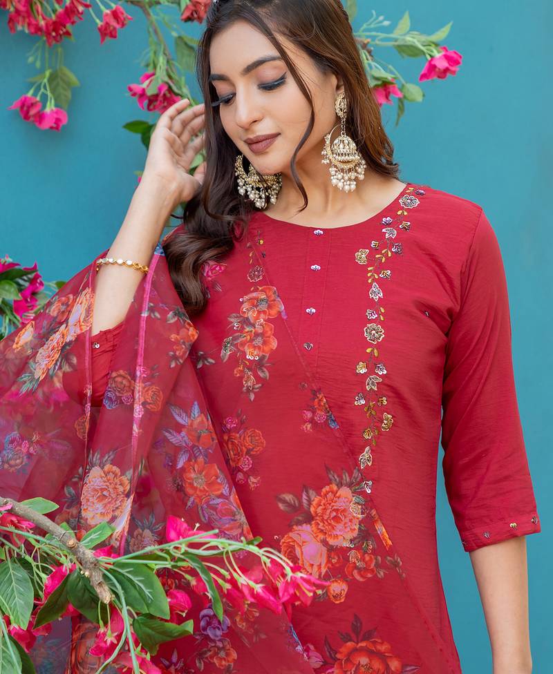 | Product Name | Women's Maroon Silk Handwork Designer Kurta Set With Dupatta | |