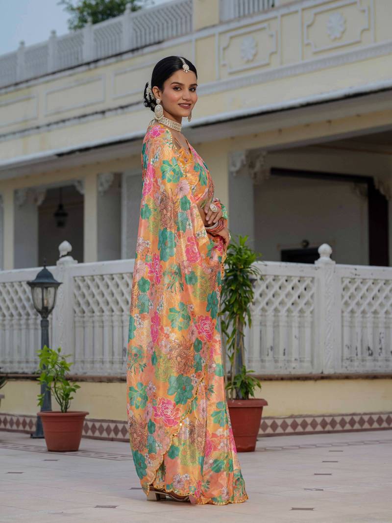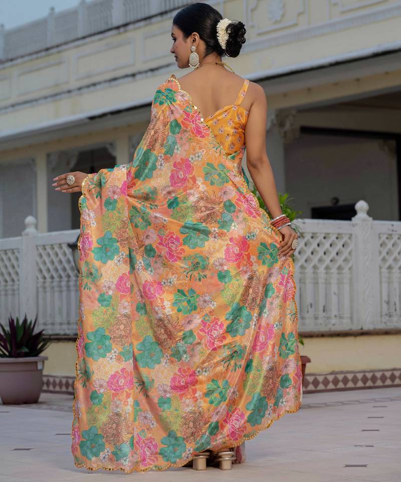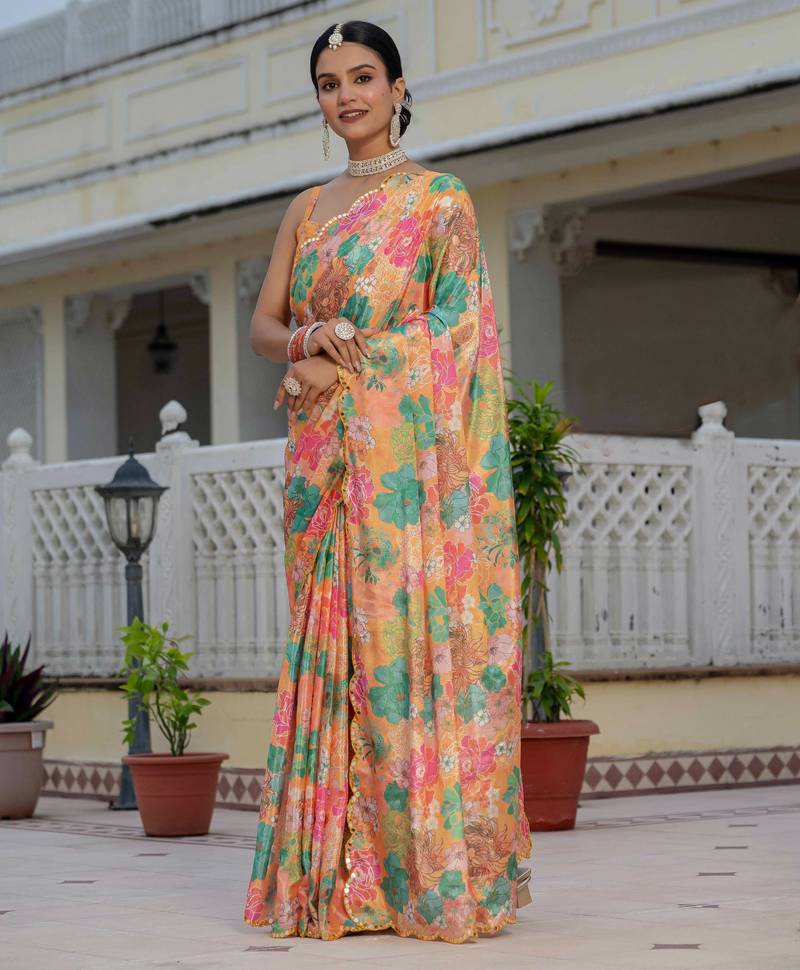 | Product Name | Multicolor Chinon Digital Print With Mirror Saree With Blouse | |