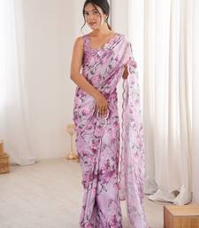 Women s elegant purple chinon digital printed designer saree