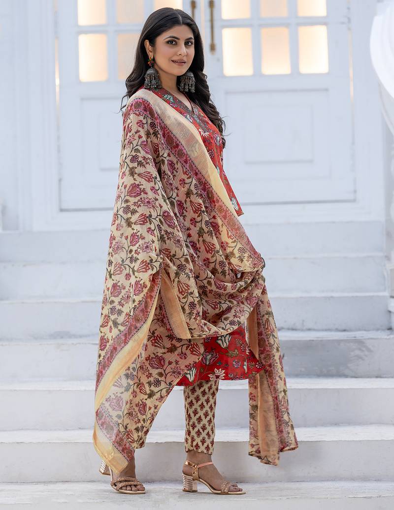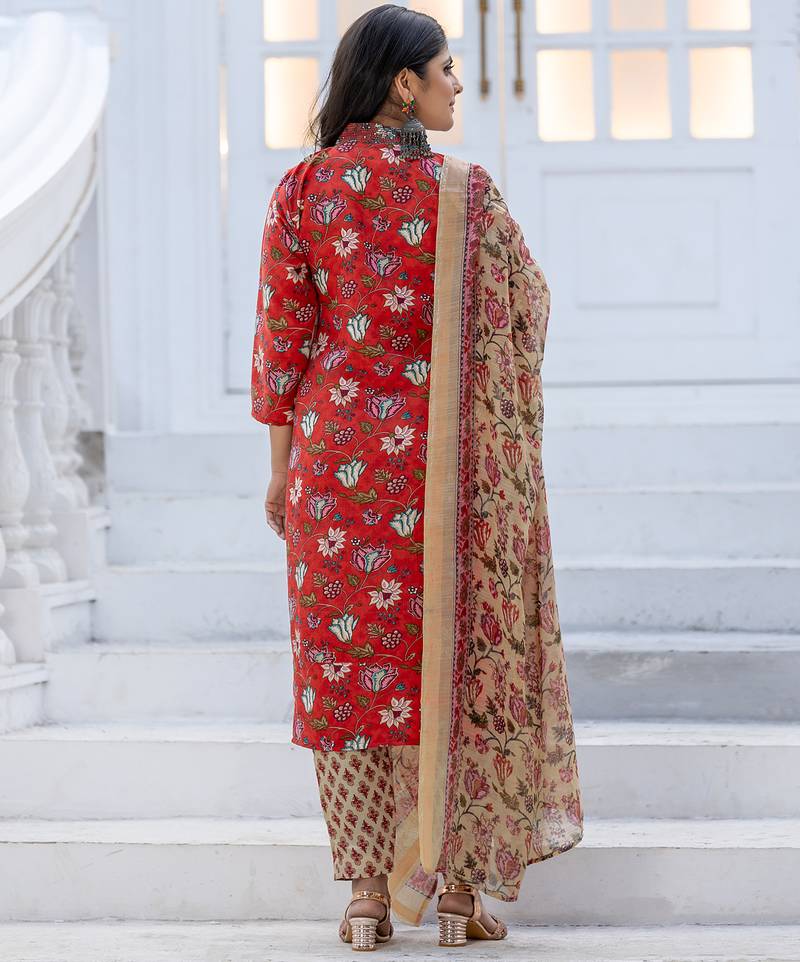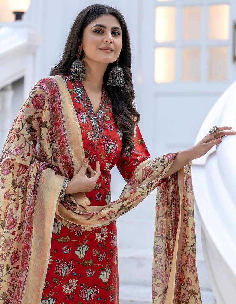 | Product Name | Women's Red Rayon Printed Designer Kurta Set With Dupatta | |