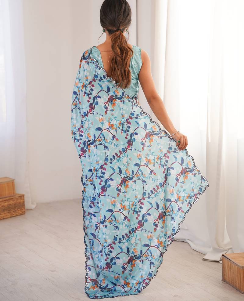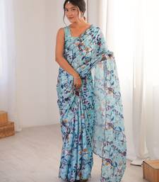 | Product Name | Women S Sky Blue Chinon Digital Printed Saree With Blouse | |