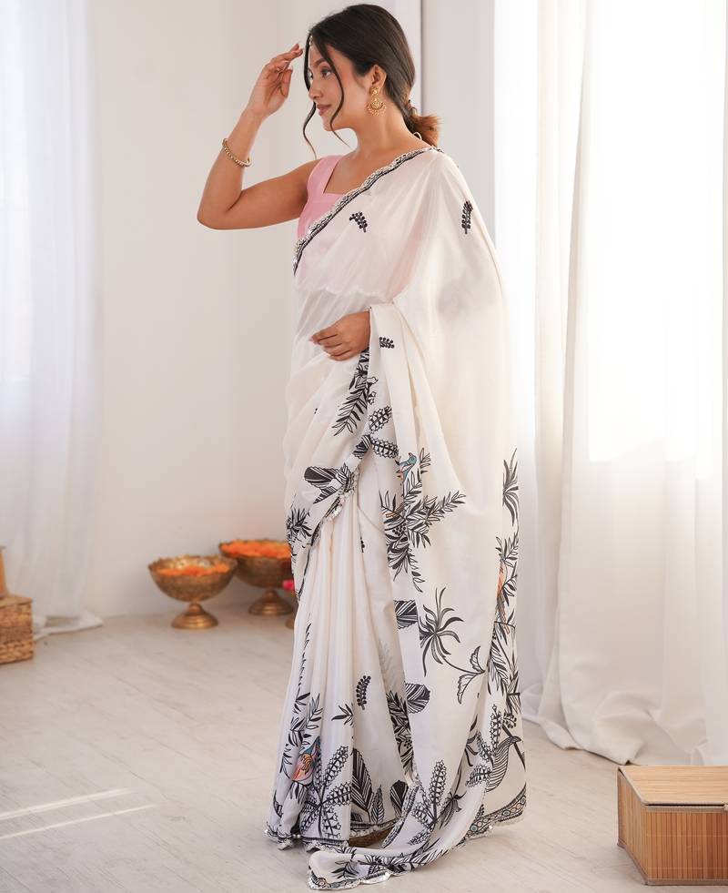 | Product Name | White Chinon Digital Print Designer Saree | |
