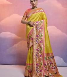 Yellow paithani silk zari woven saree with blouse