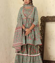 | Product Name | Green Floral Printed Cotton Kurta Sharara With Dupatta Set | |