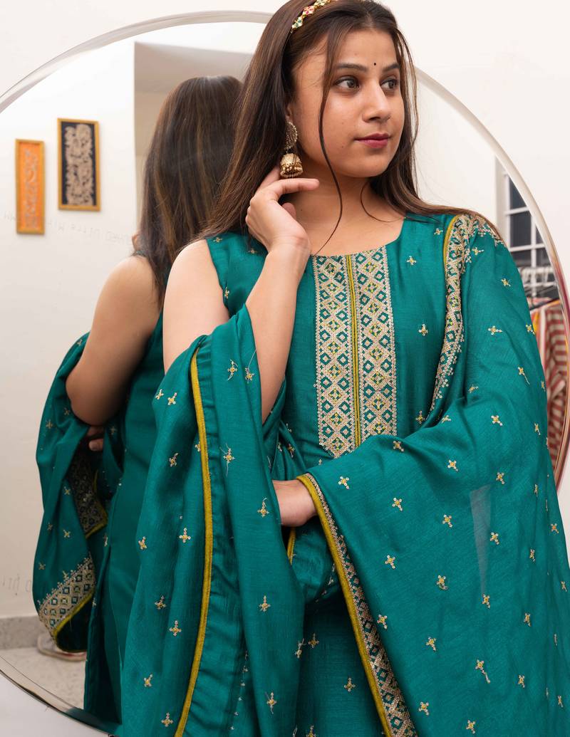 | • | Dupatta | : | Color- Teal,Na / Fabric- Silk Blend |