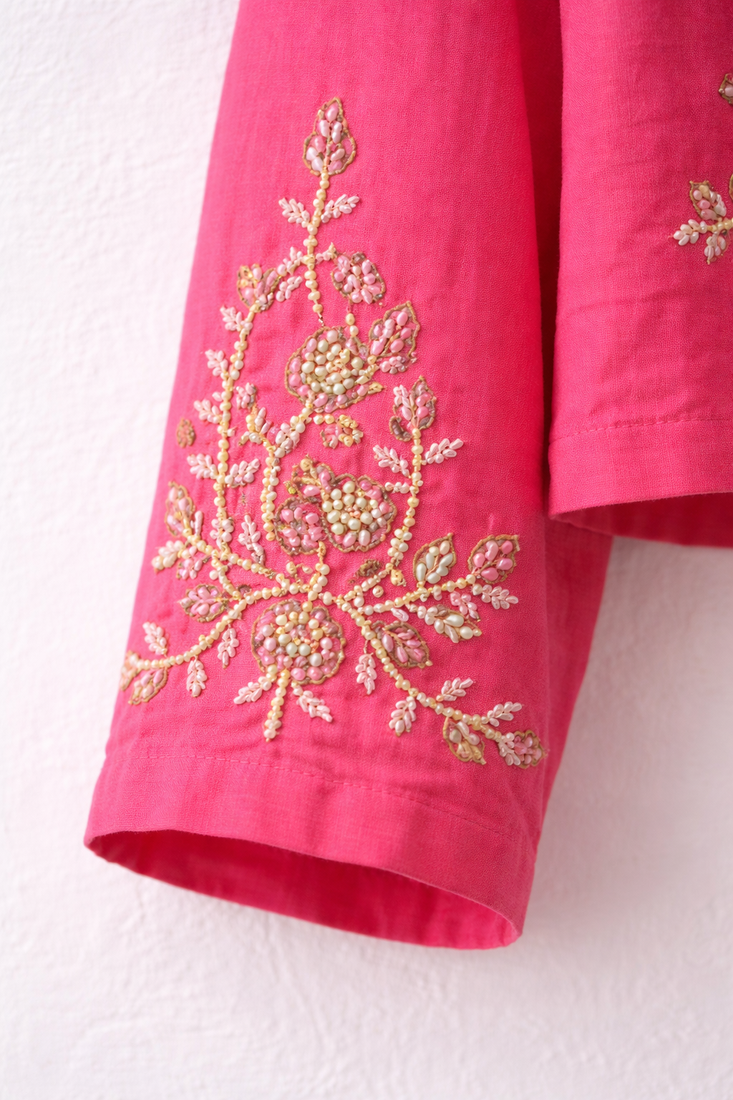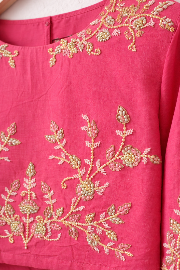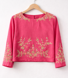 Crafted From Breathable, Skin Friendly Cotton For All Day Comfort And Ease.Features Intricate Thread Embroidery Across The Front, Sleeves, And Neckline For A Rich, Festive Appeal.Modern Cropped Length That Pairs Effortlessly With Lehengas, Skirts, Or High Waisted Bottoms. Clean And Minimal Neckline Design For A Refined And Versatile Look. Ideal For Celebrations, Small Functions, And Ethnic Styling With A Contemporary Twist.