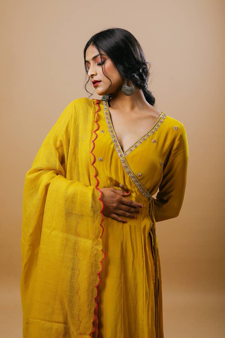 | Product Name | Mustard Crepe Embroidered Kurta Sets | |