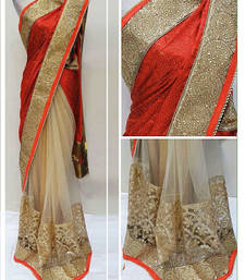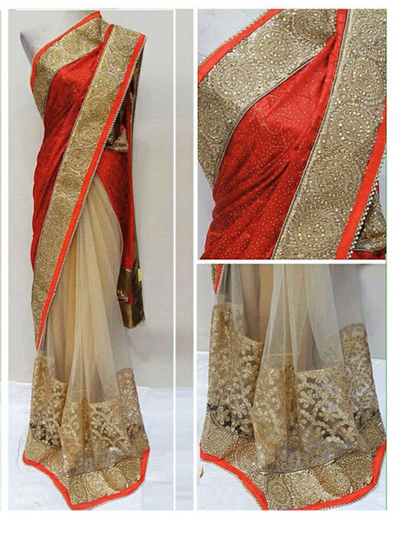 Product Description | Fabric: Nylon Mono Net Blouse: Banglori Silk Work: Multi Work, Hand Work, Sequence Work Color: Cream, Red Length : 5.50 Mtr Type : Saree |