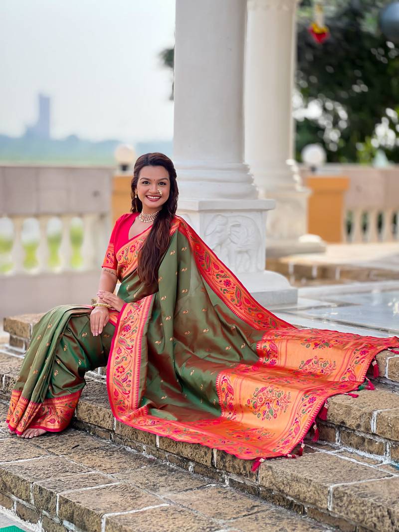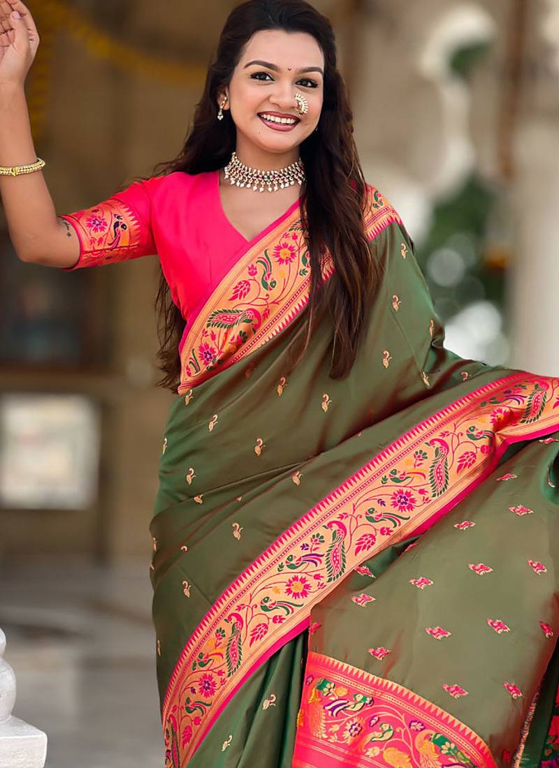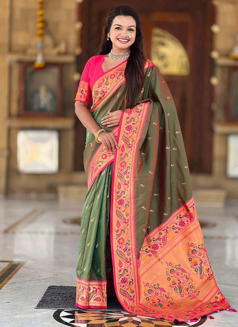 | Product Name | Designer Green Meenakari Weaving Work Paithani Silk Saree | |