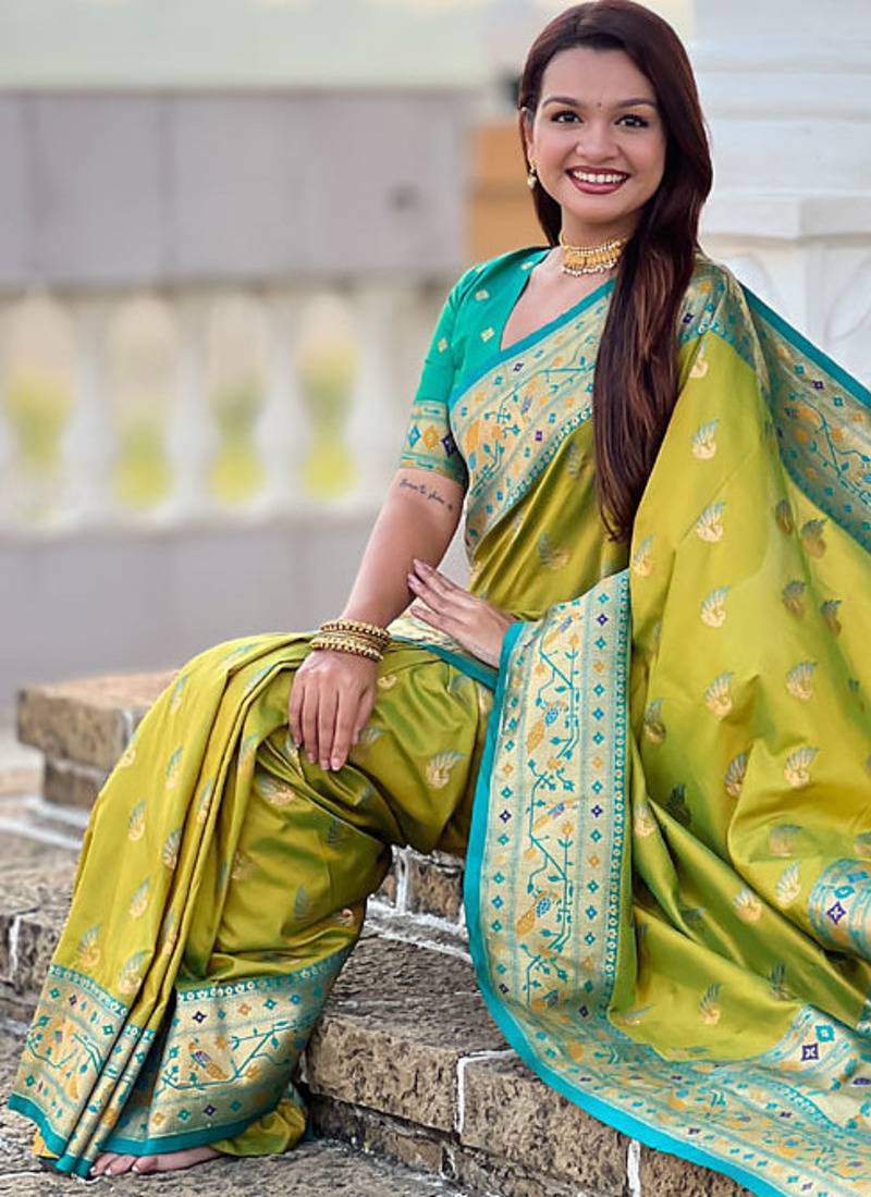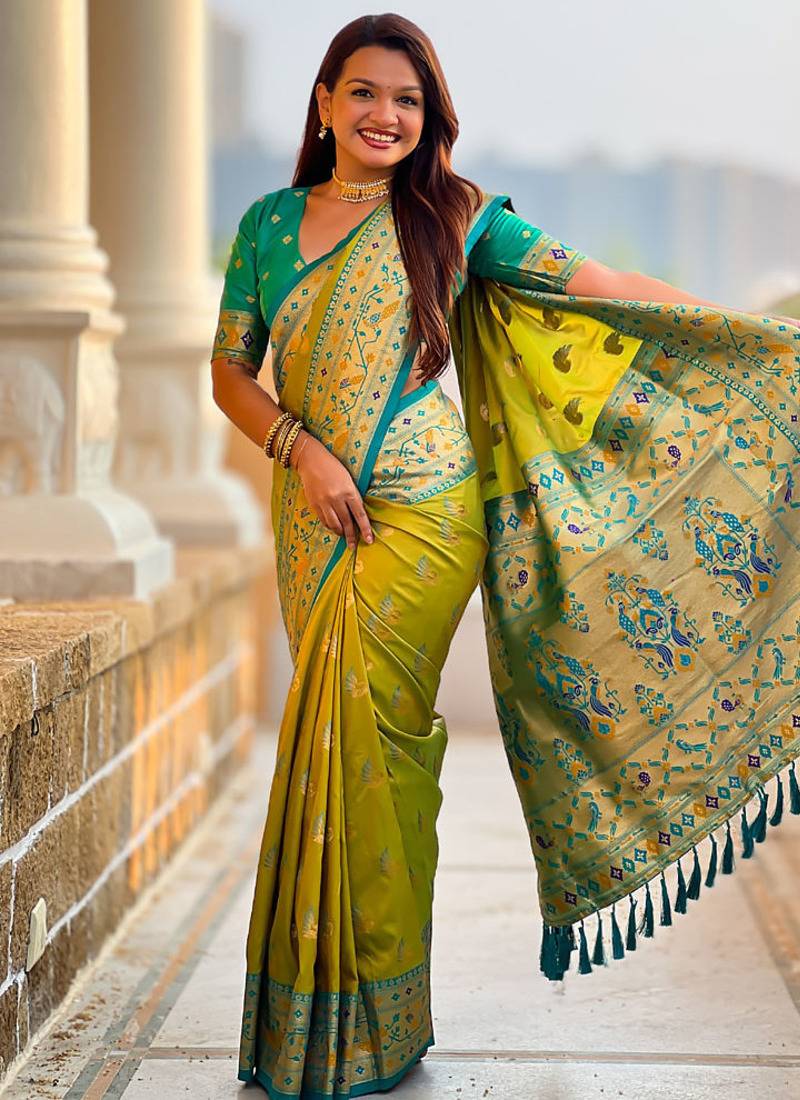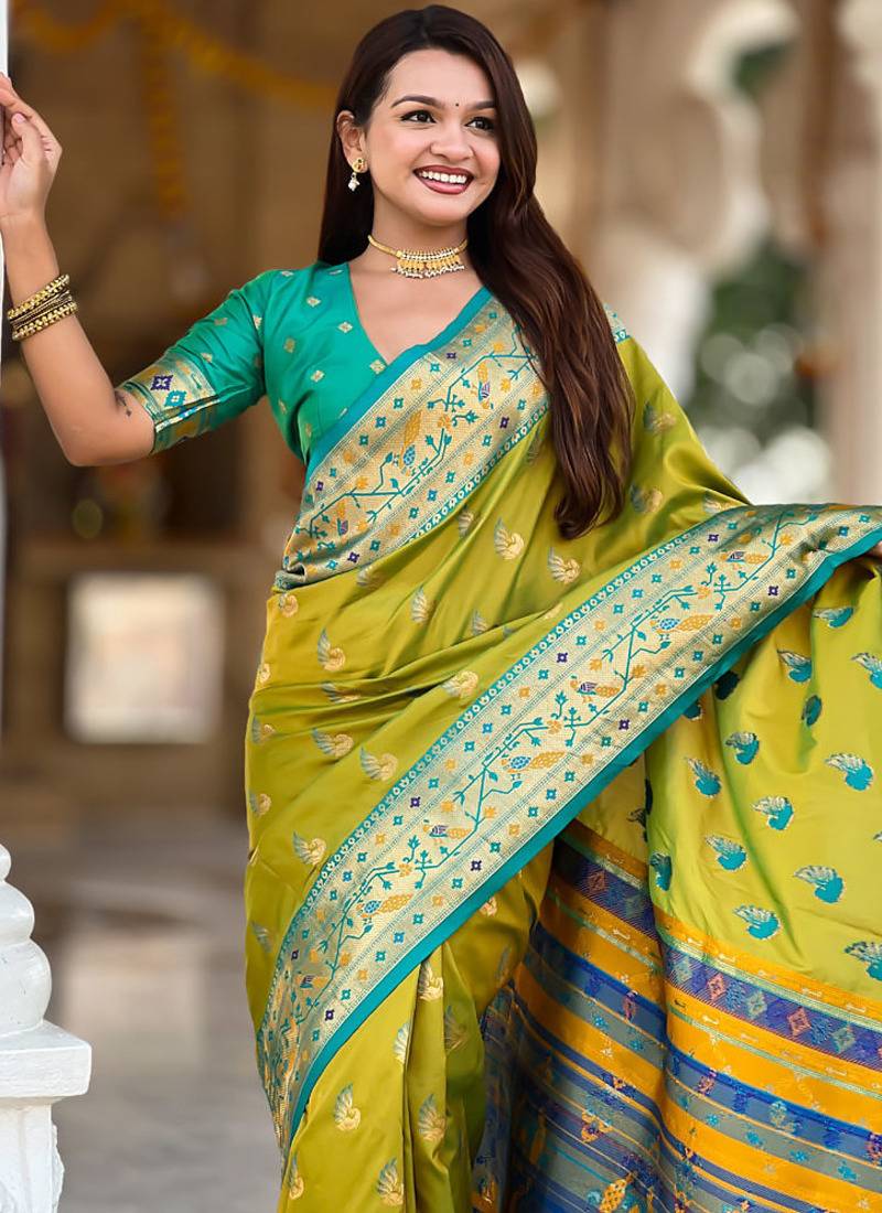 | Product Name | Designer Lemon Green Zari Weaving Work Paithani Silk Saree | |