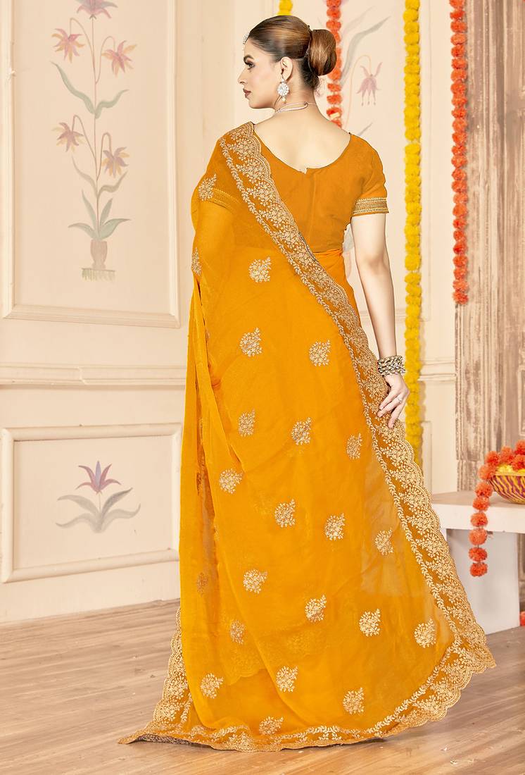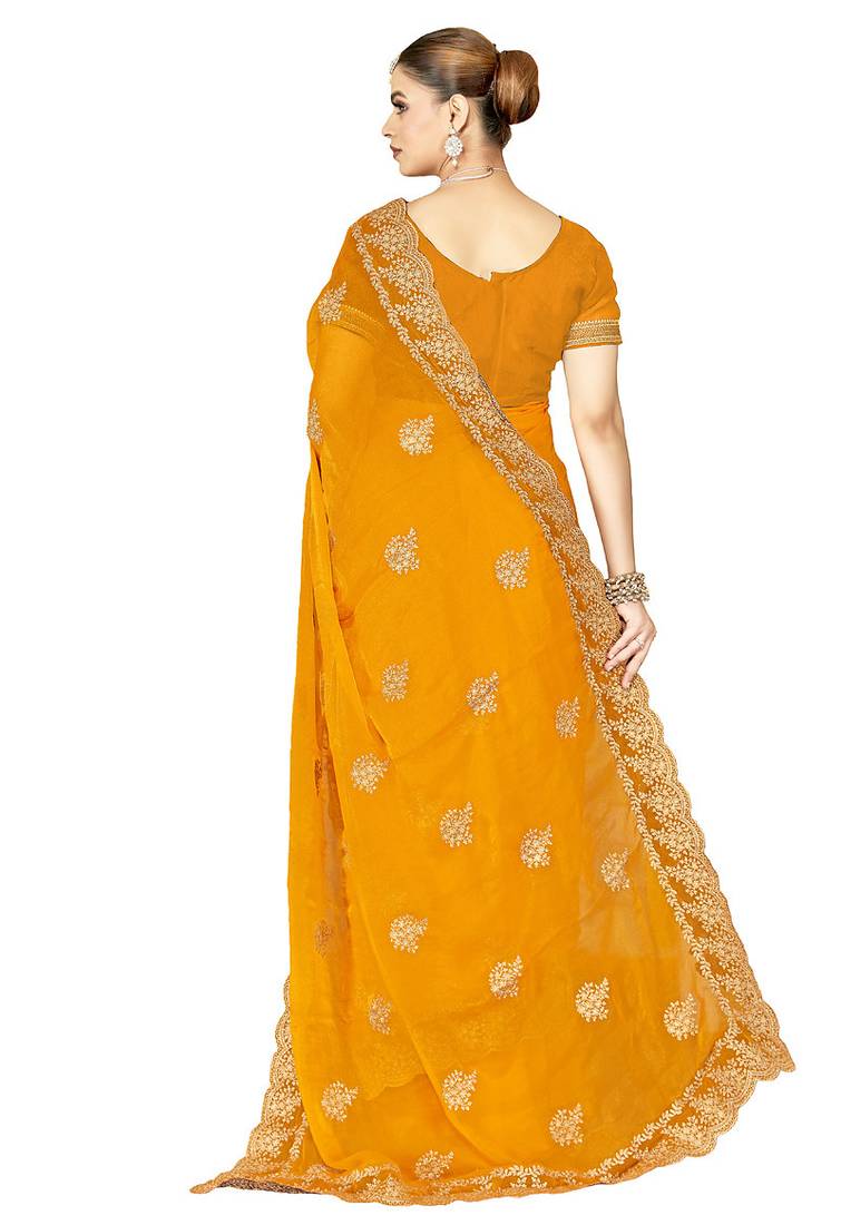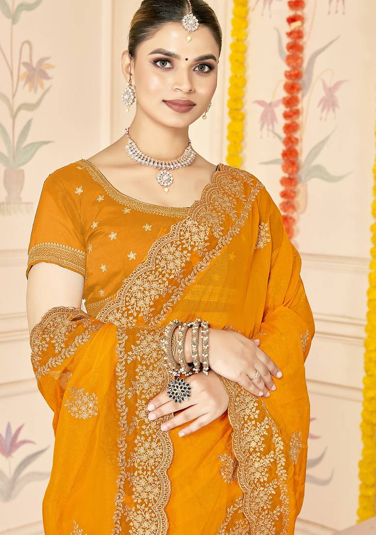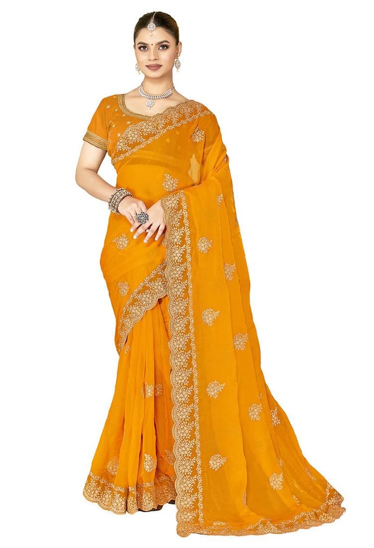 | Product Name | Designer Mustard Zari Embroidery Work Moss Silk Blend Saree | |
