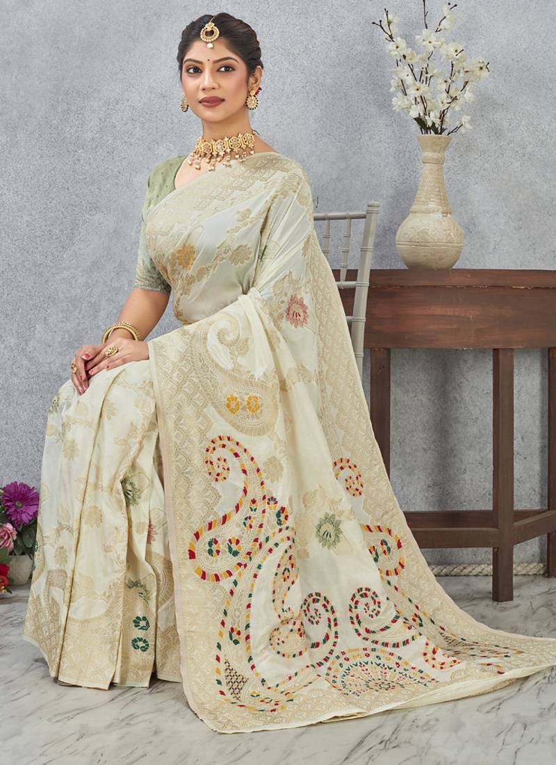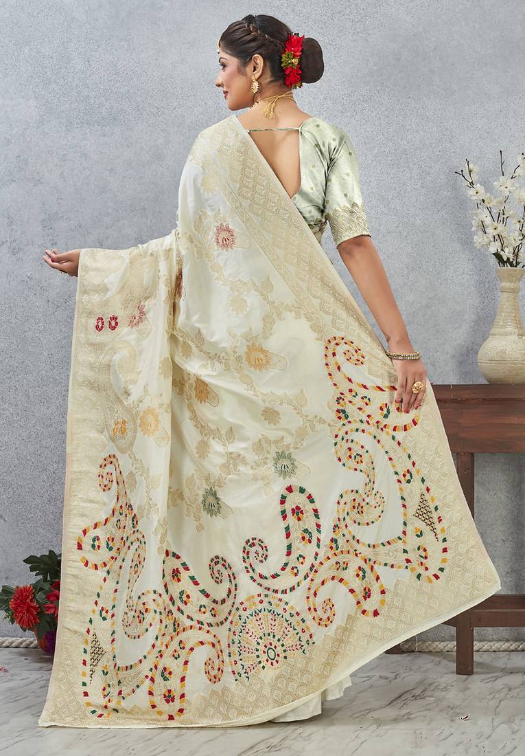 | Product Name | Designer Off White Zari Weaving Tassel Pallu Work Silk Blend Saree | |