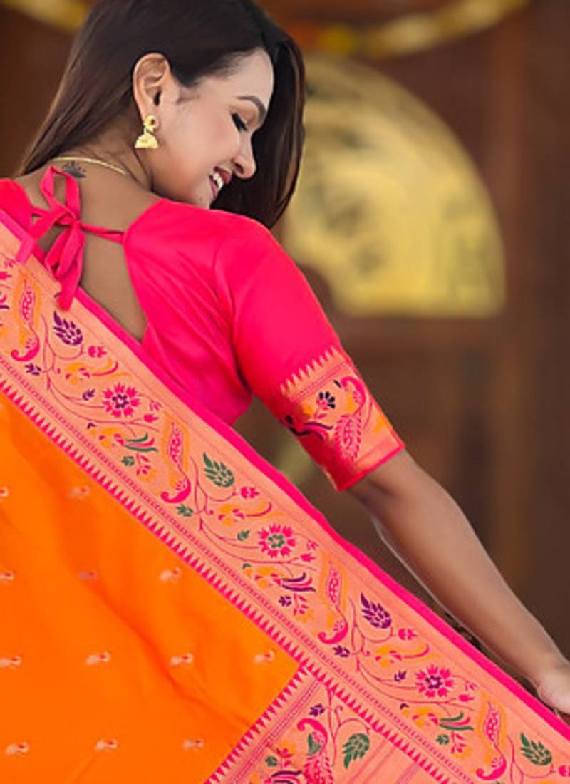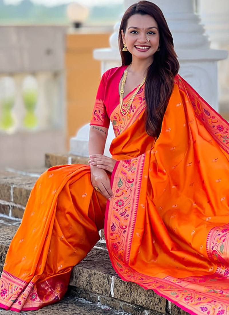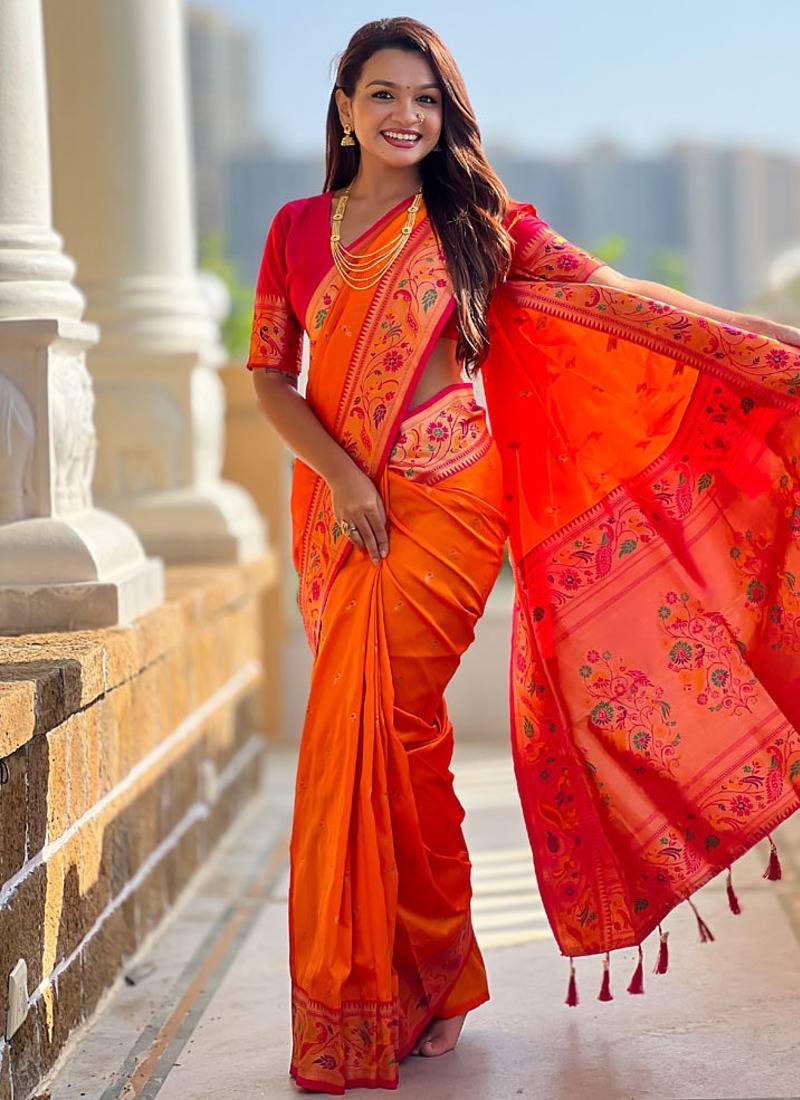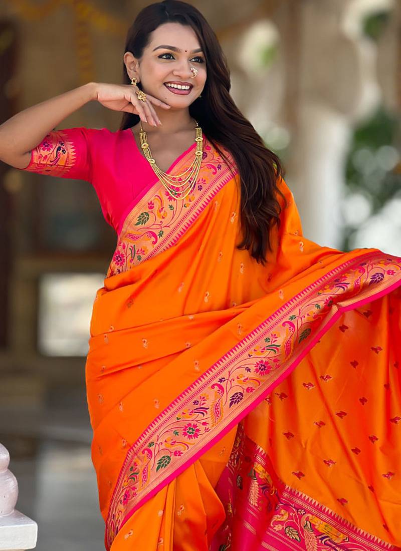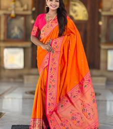 | Product Name | Designer Orange Meenakari Weaving Work Paithani Silk Saree | |