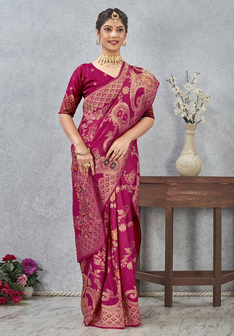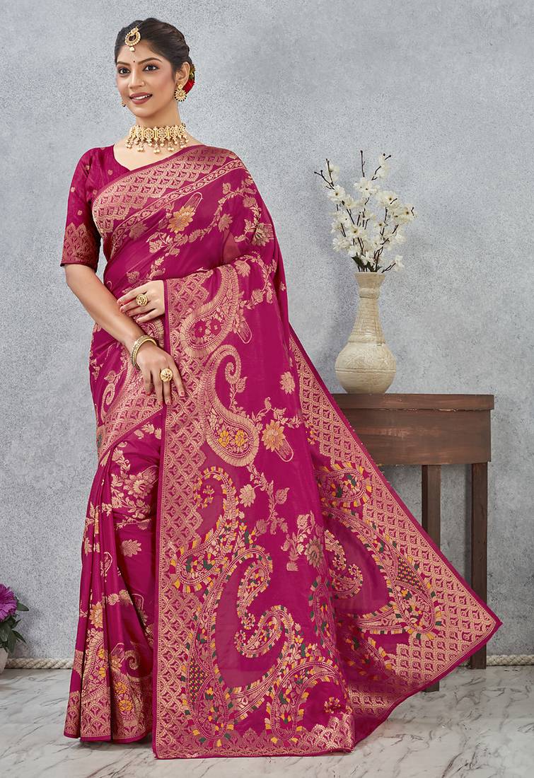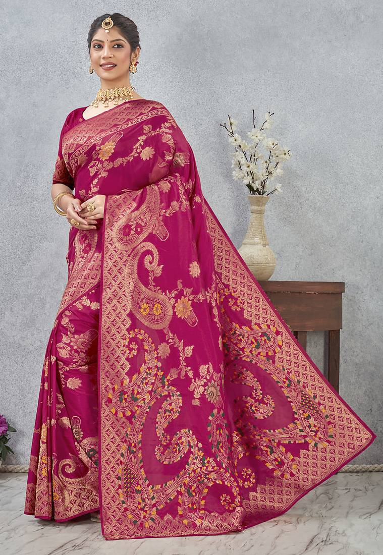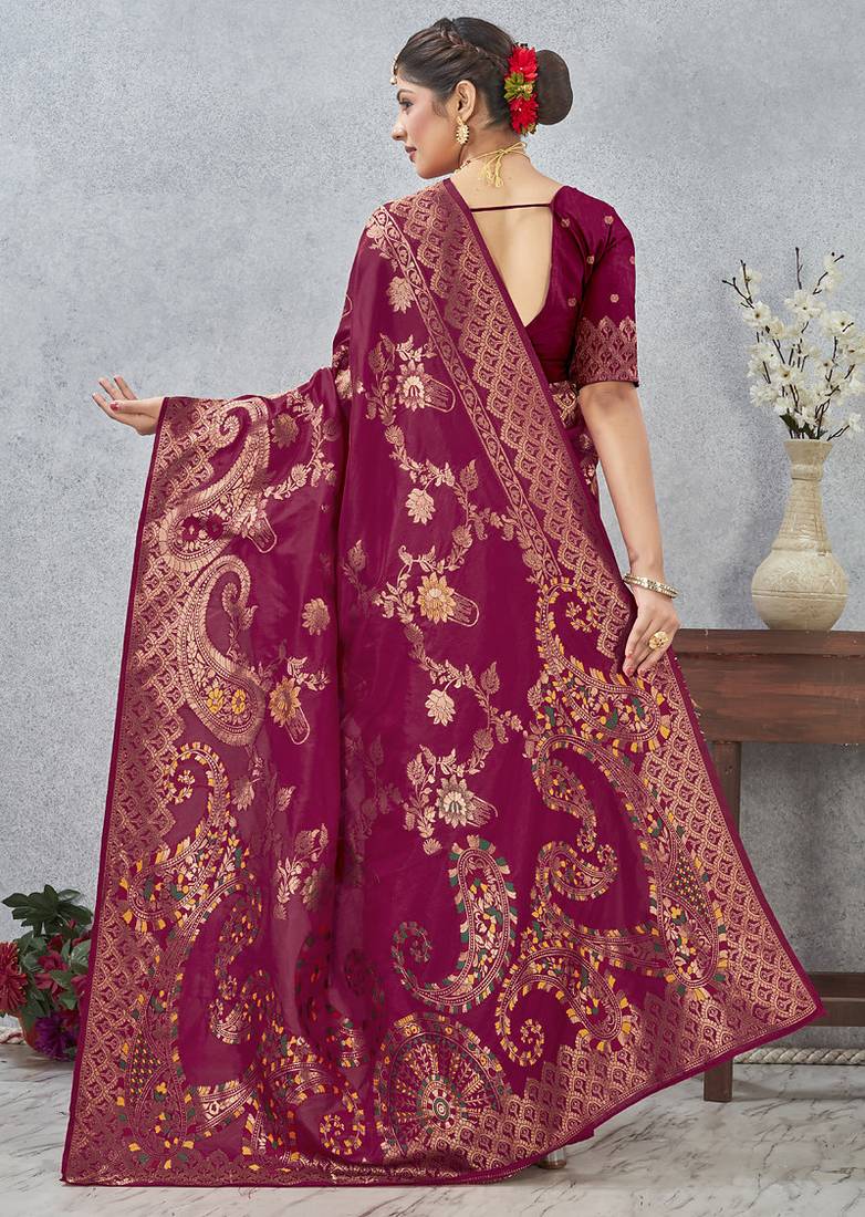 Designer rani zari weaving tassel pallu work silk blend saree