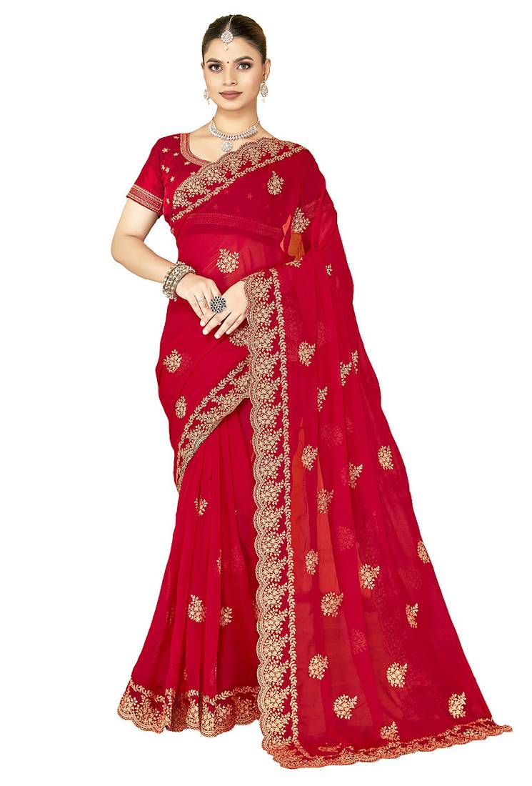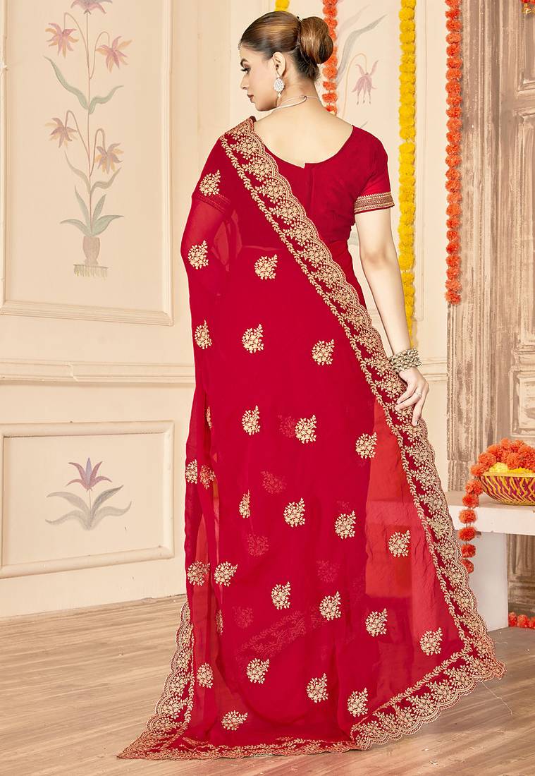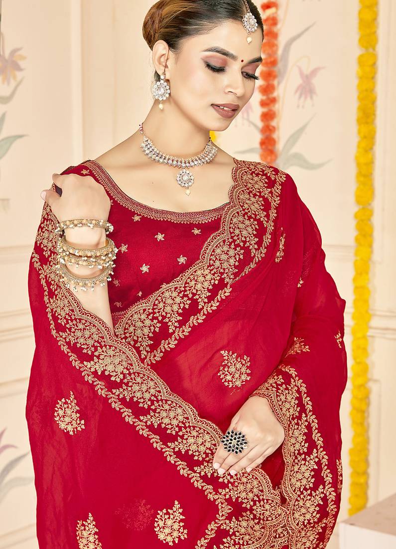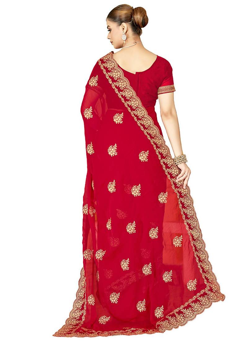 | Product Name | Designer Red Zari Embroidery Work Moss Silk Blend Saree | |