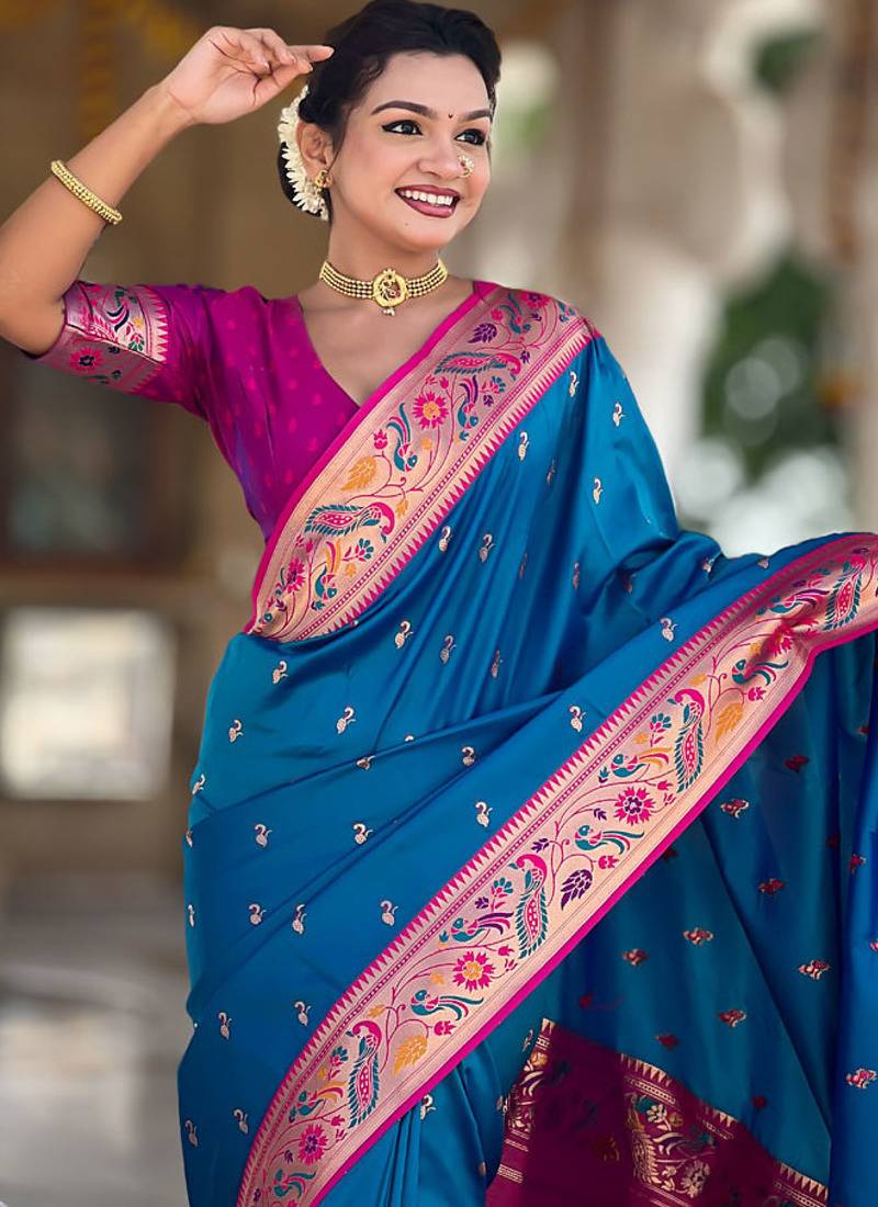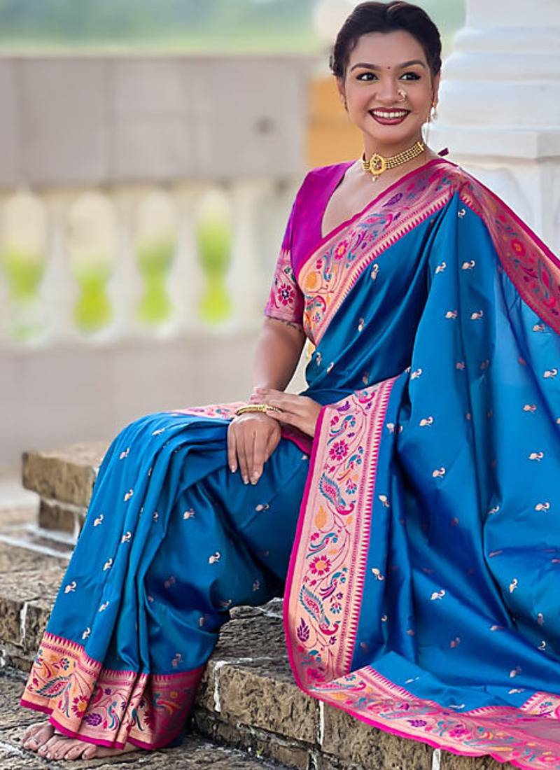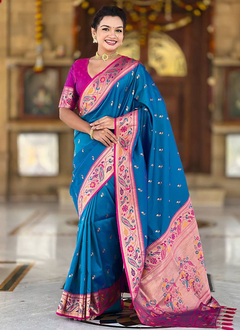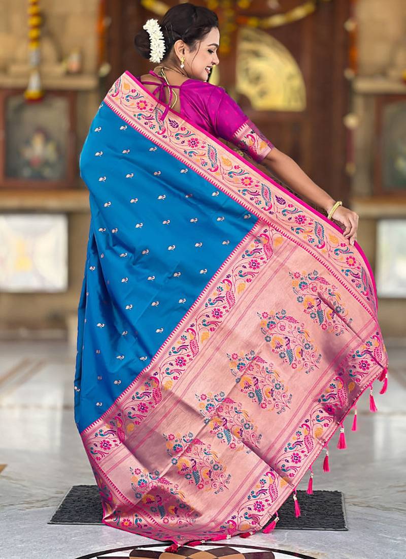 | Product Name | Designer Sky Blue Meenakari Weaving Work Paithani Silk Saree | |