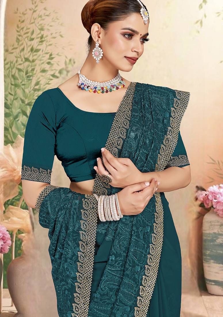 | • | Saree | : | Color- Teal / Fabric- Georgette |
