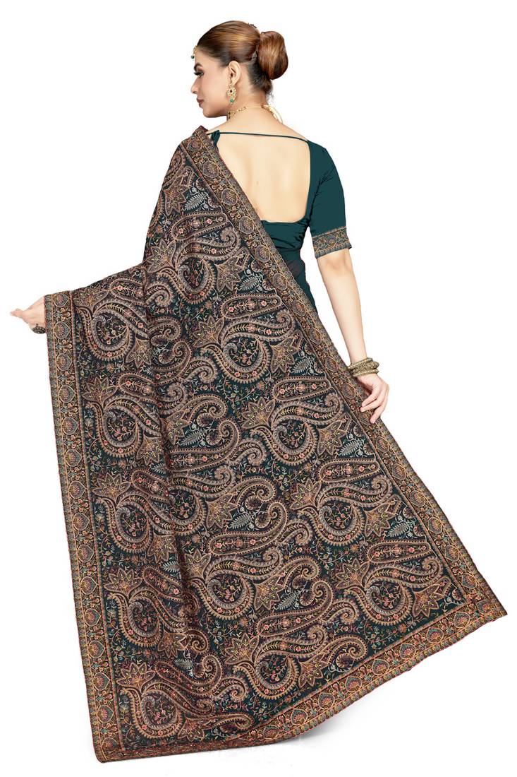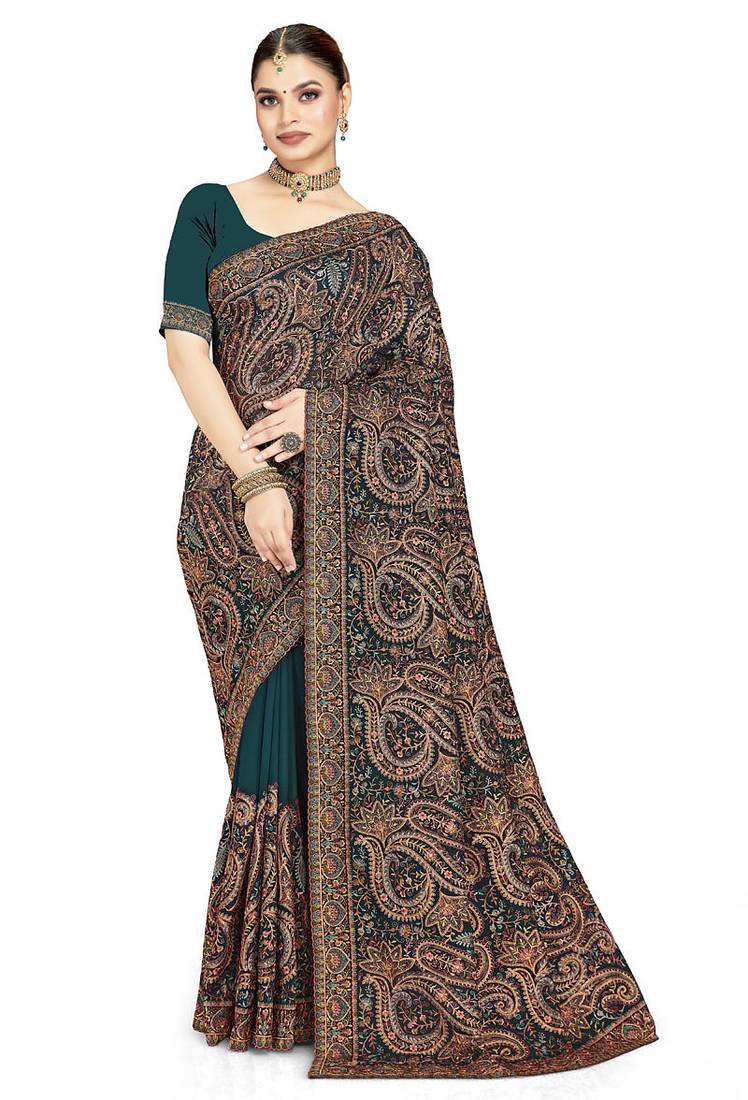 | Product Name | Designer Teal Blue Resham Multi Kashmiri Embroidery Work Georgette Saree | |