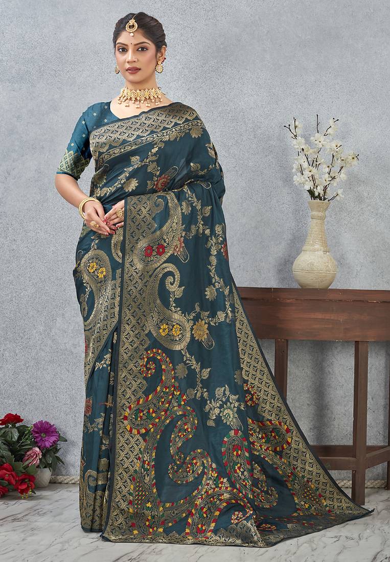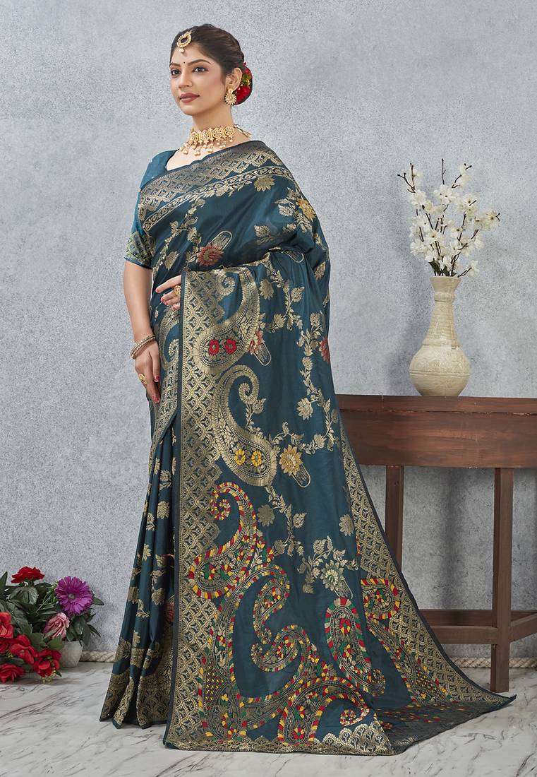 | • | Saree | : | Color- Teal / Fabric- Silk Blend |