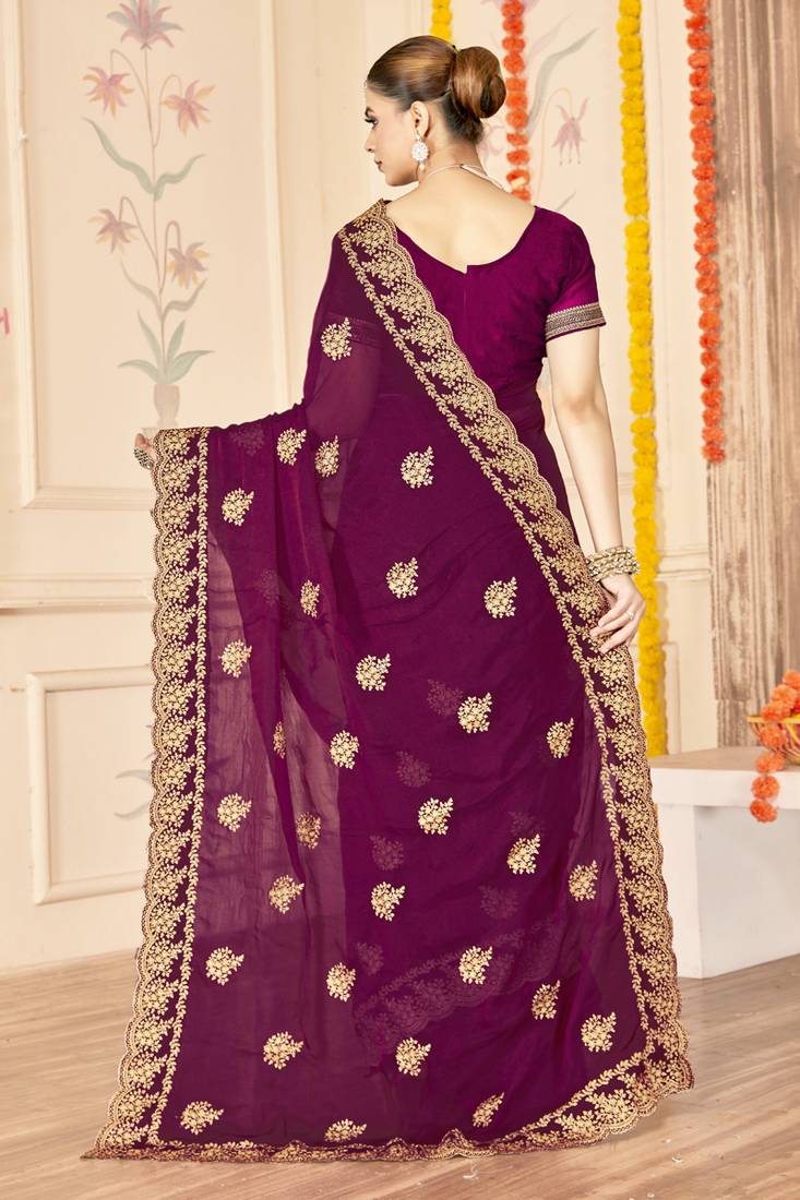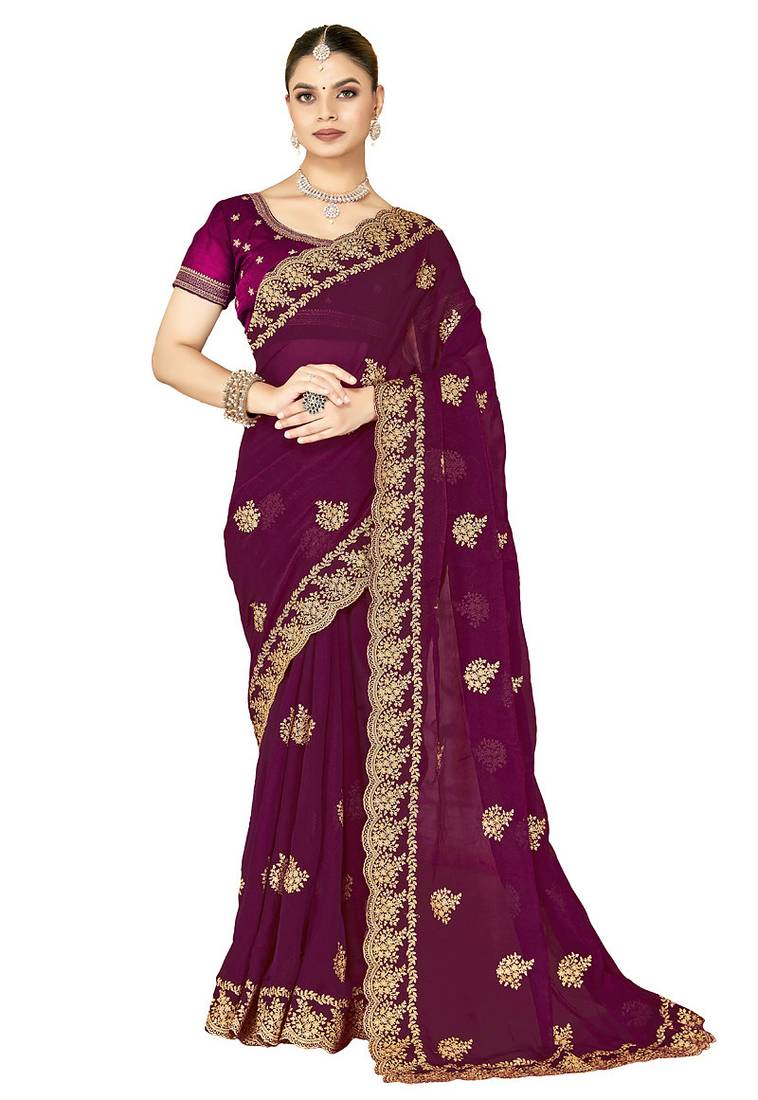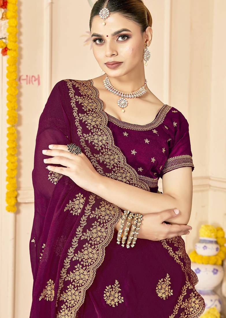| Product Name | Designer Wine Zari Embroidery Work Moss Silk Blend Saree | |