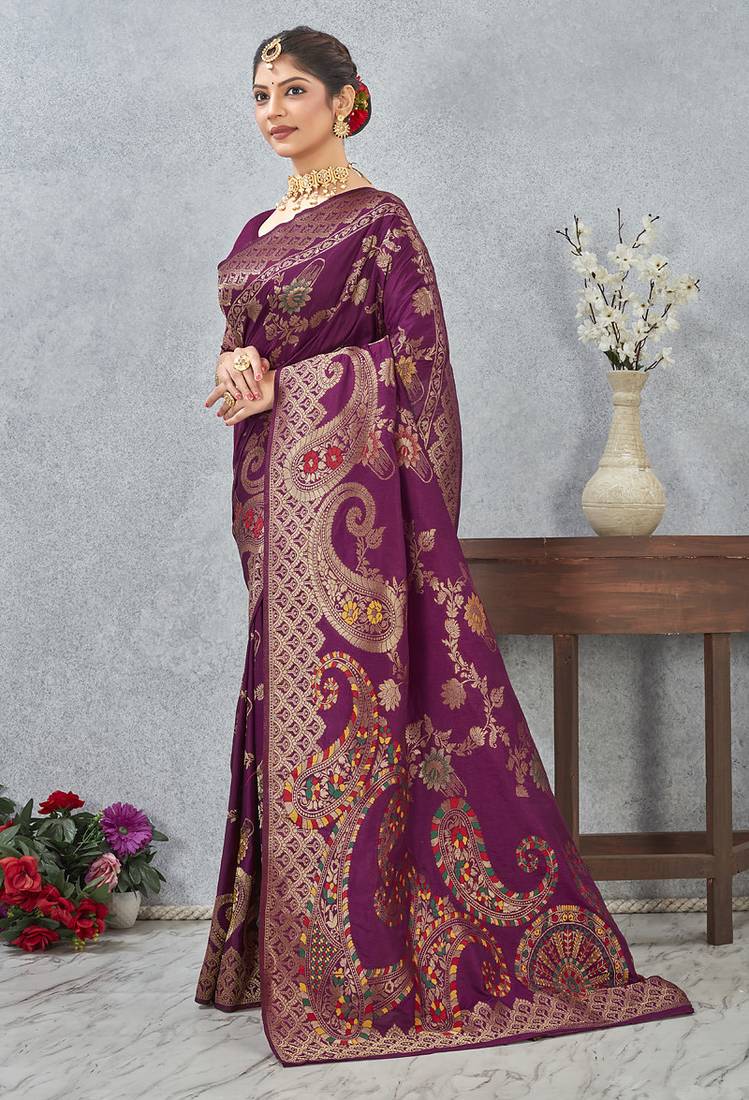 | Product Description | Be The Sunshine Of Everyone Eyes Dressed In This Beautiful Wine Banarasi Silk Blend Saree. This Lovely Attire Is Looking Beautiful Zari Weaving Meenakari Work Over The Saree With Traditional Motif's Patterns. This Saree Comes With Matching Unstitched Wine Banarasi Silk Blouse Piece. The Size Of Saree Is 5.5 Meter And Blouse Size Is 0.80 Meter. Blouses With Elaborate Patterns And Colors Are Used For Photoshoot. Color And Pattern Of The Blouse Might Not Be As Shown In The Image. Designs, Colors And Patterns On The Actual Product May Slightly Vary From Designs Shown In The Image. Images Are Only Representative. |