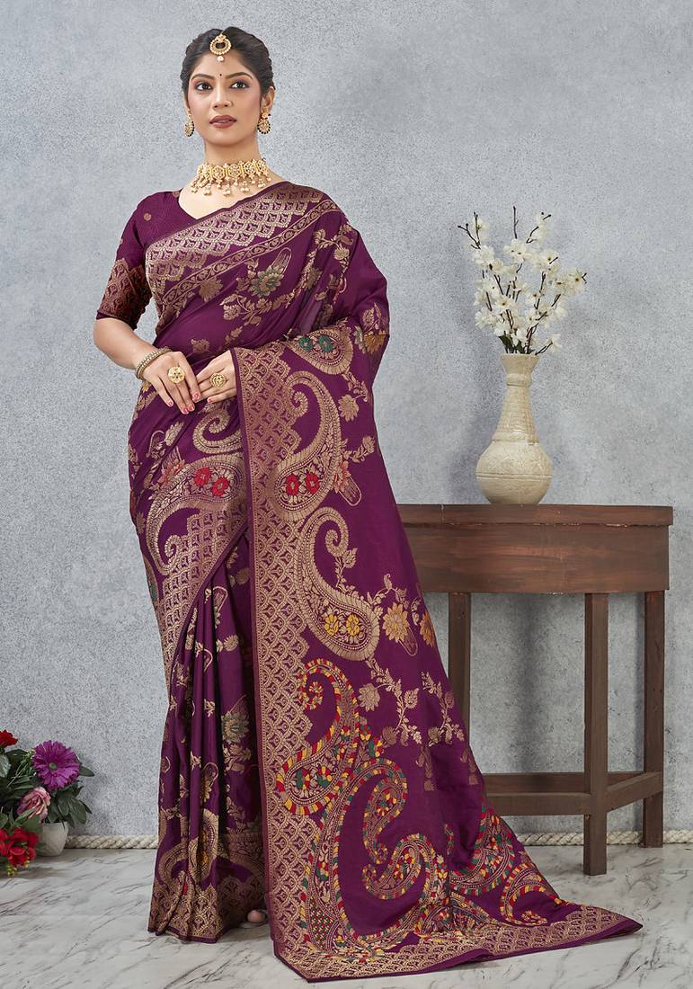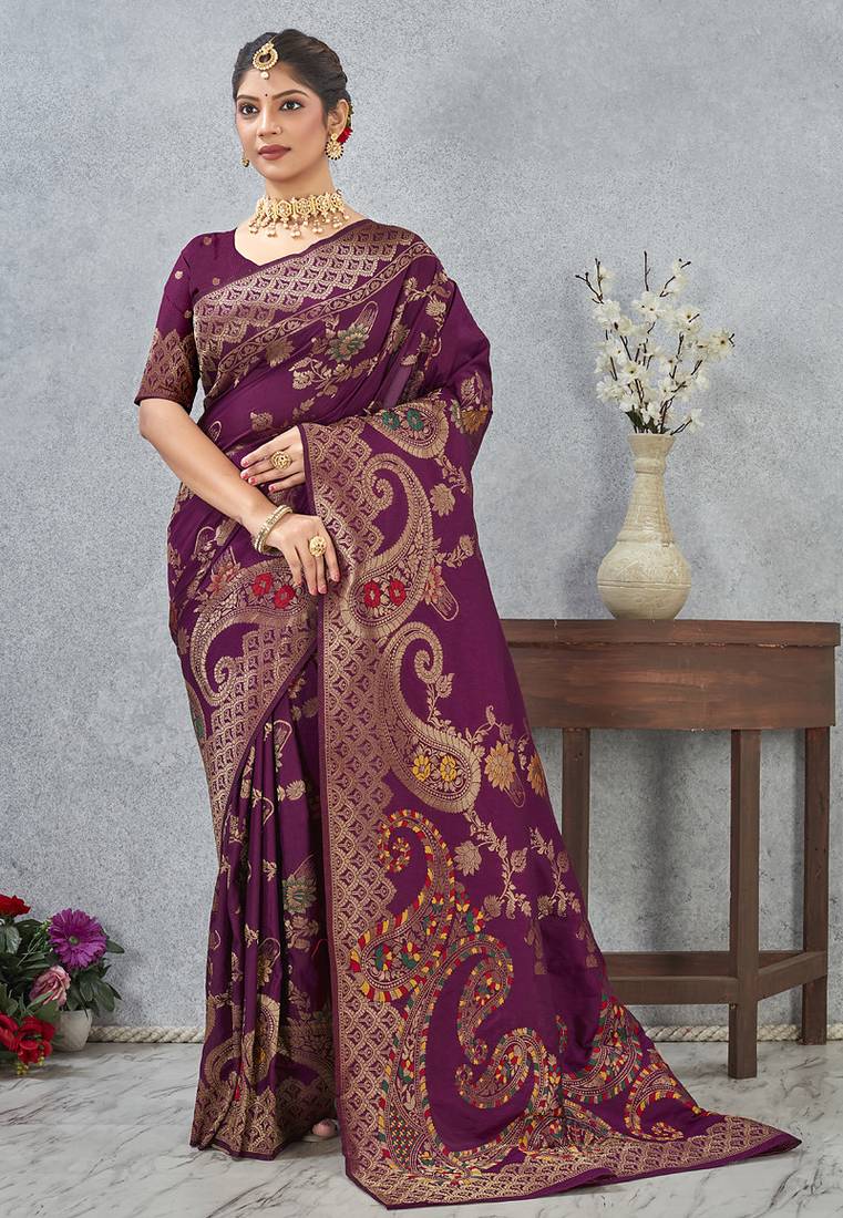| Product Name | Designer Wine Zari Weaving Tassel Pallu Work Silk Blend Saree | |