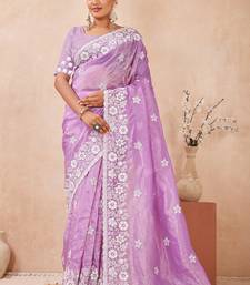 | Product Name | Indian Voilet Resham Sequins Embroidery Work Silk Blend Saree | |