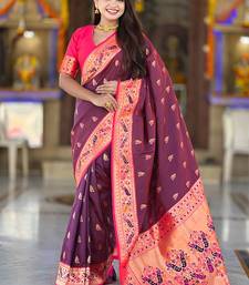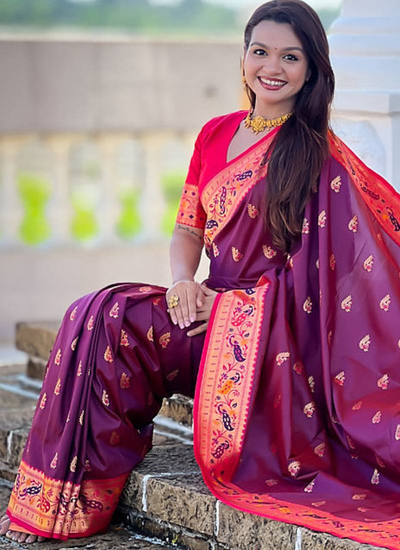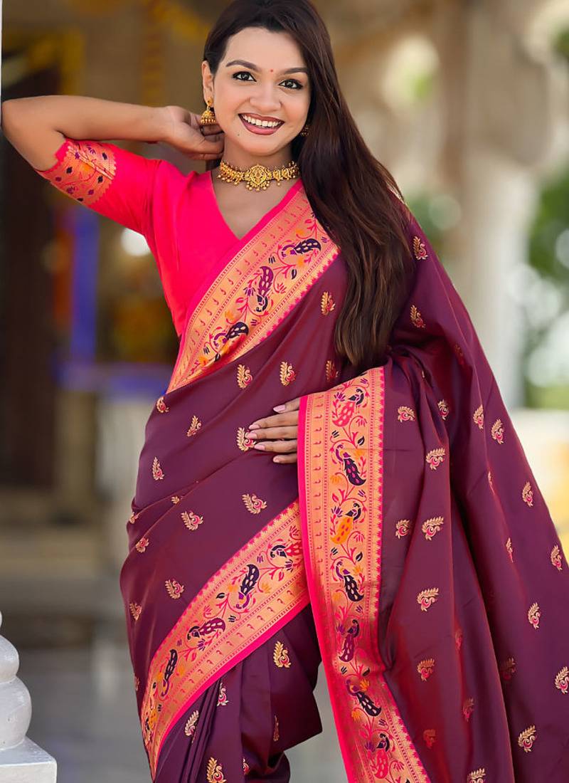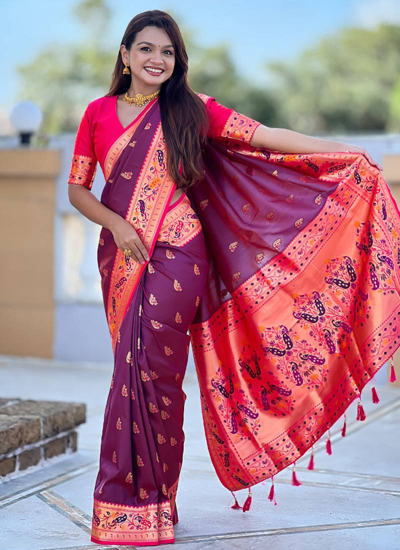 | Product Name | Indian Wine Zari Motif Weaving Work Paithani Silk Saree | |