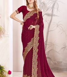 Maroon zari resham embroidery work silk blend party wear saree