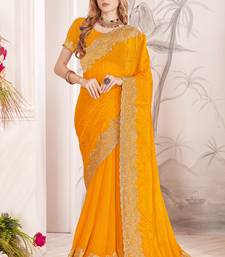 Mustard zari resham embroidery work silk blend party wear saree
