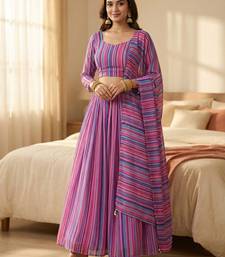 Georgete striped printed semistitched lehenga choli
