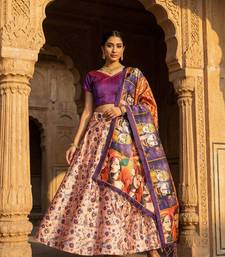 Kalamkari print satin semi stitched lehenga choli & unstitched blouse with dupatta