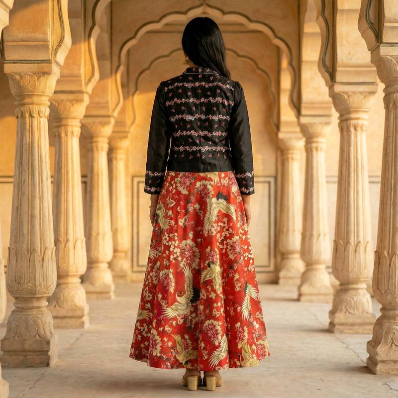 | Product Description | "Red And Black Printed Croptop Lehenga Choli Without Dupatta,