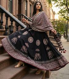 Navratri ajarakh print rayon semi stitched lehenga choli & unstitched blouse with dupatta