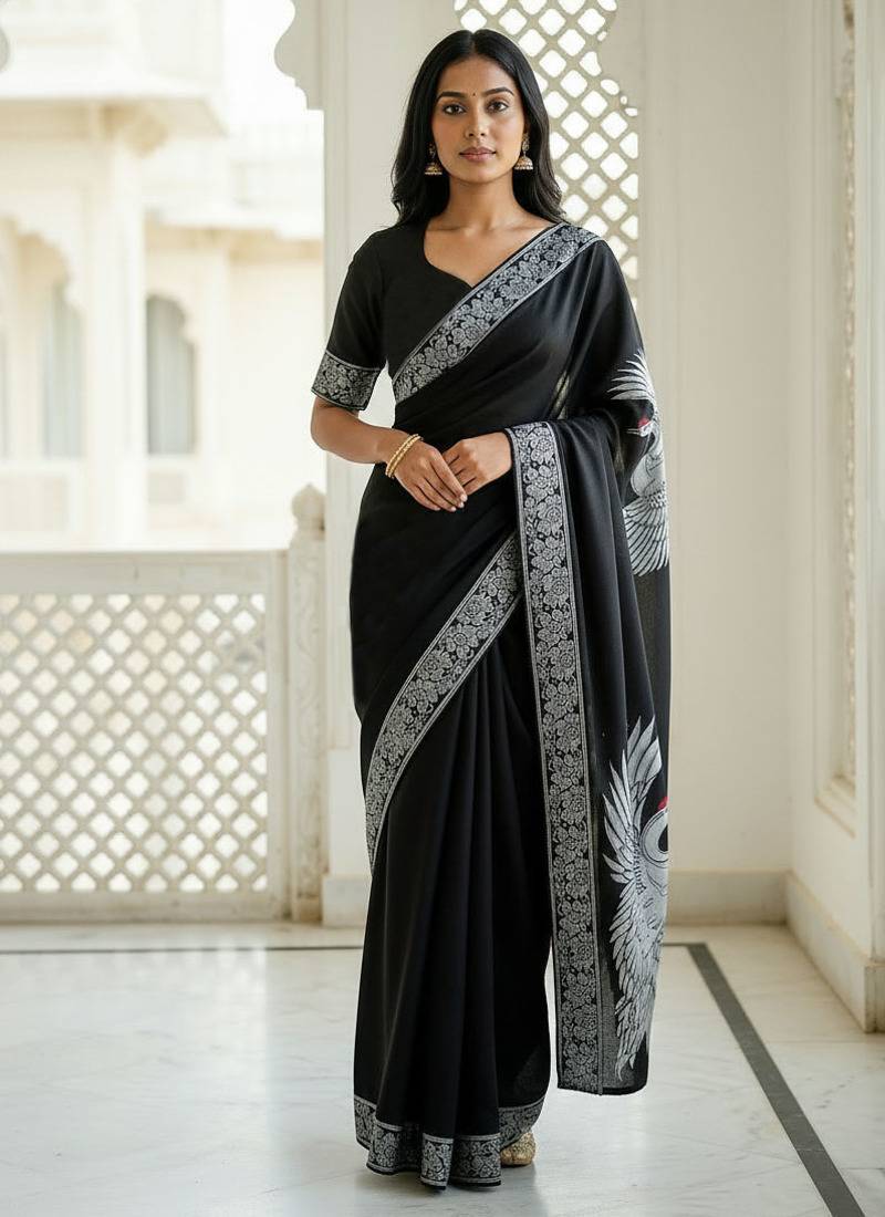 | • | Saree | : | Color- Black / Fabric- Rayon |