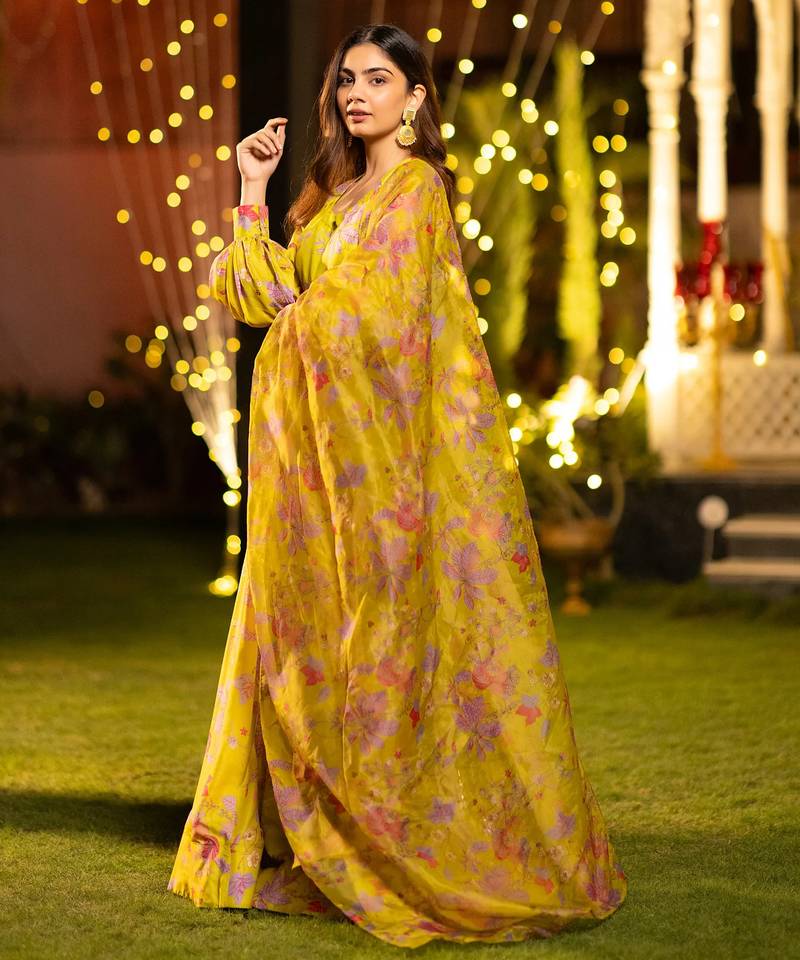 | • | Dupatta | : | Color- Mustard / Fabric- Organza |