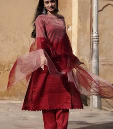 Blood red cotton silk embroidered kurta cut work pant with duptta