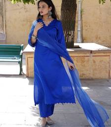 | Product Name | Blue Cotton Silk Embroidered Kurta Cut Work Pant With Duptta | |