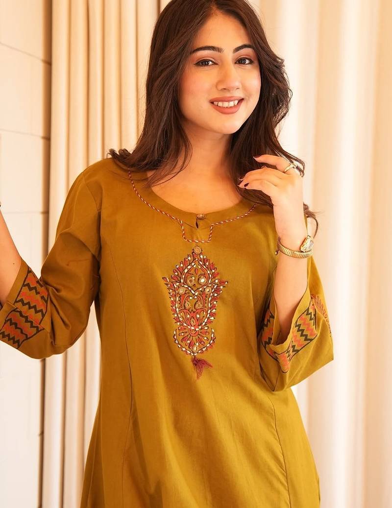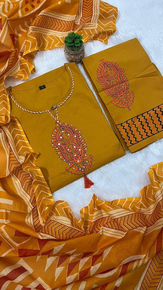 | Product Name | Dark Yellow Cotton Printed Printed Suit Set | |