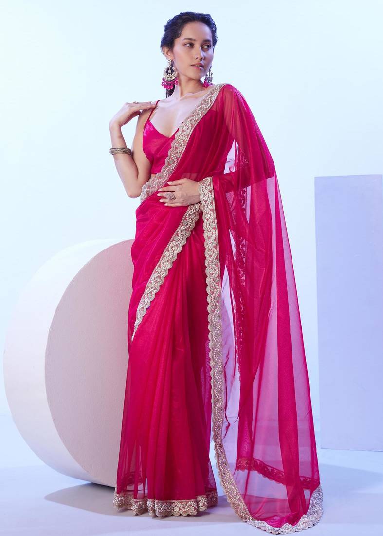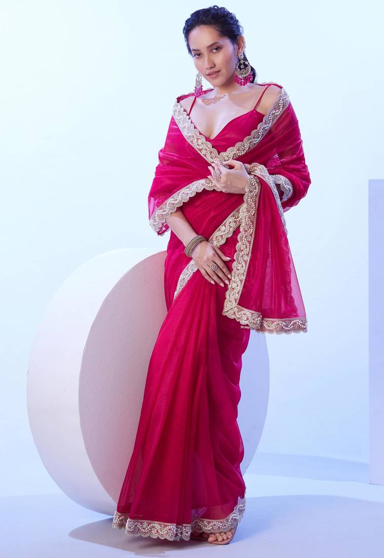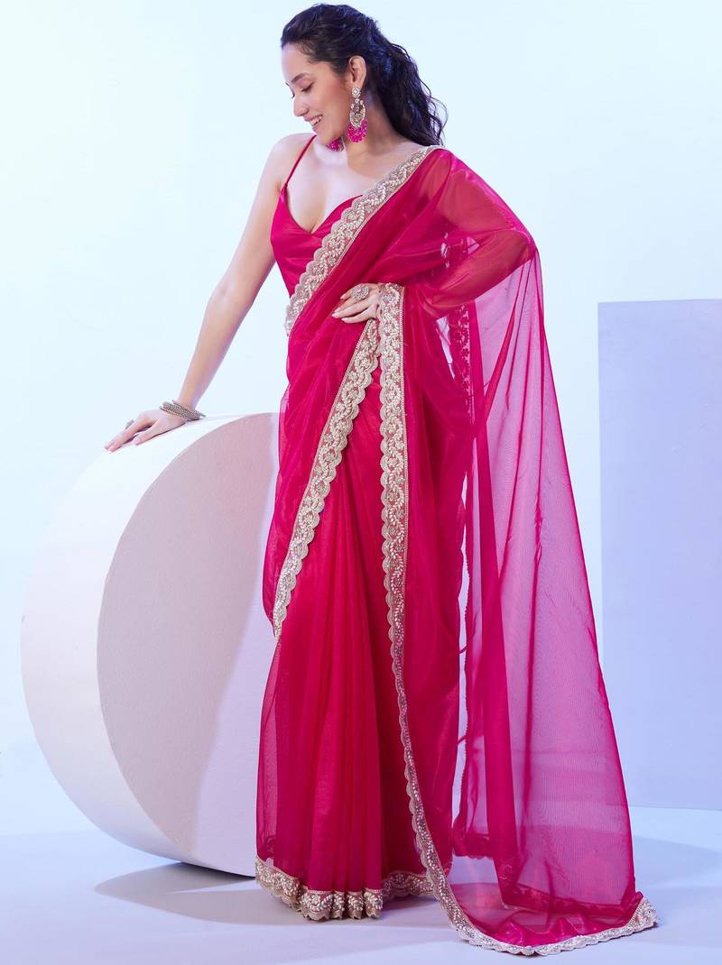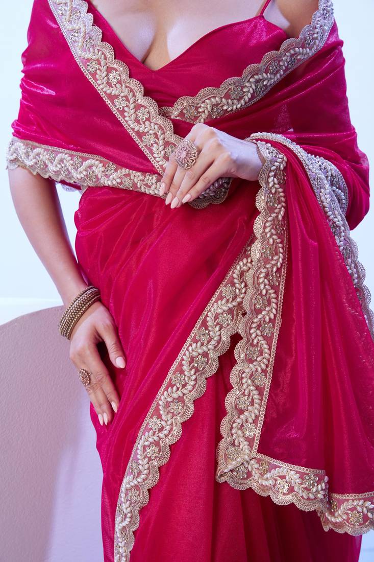 Product Name Red Embellished Beads And Stones Saree With Blouse