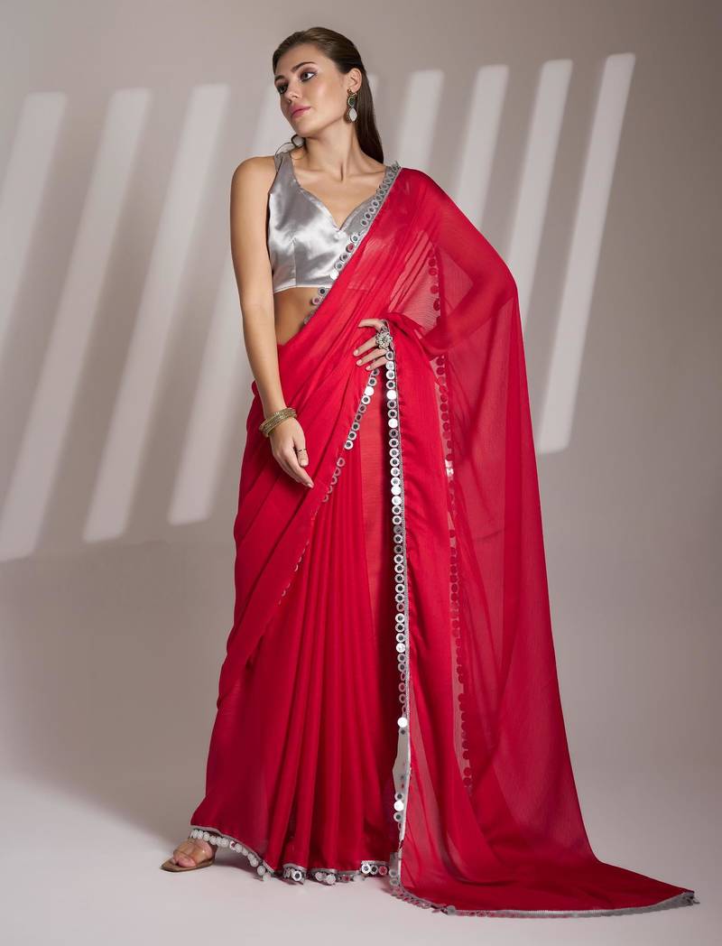 | Product Name | Red Chiffon Designer Saree With Blouse | |