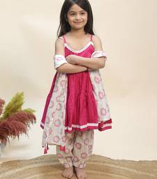 Pink printed cotton kurta set
