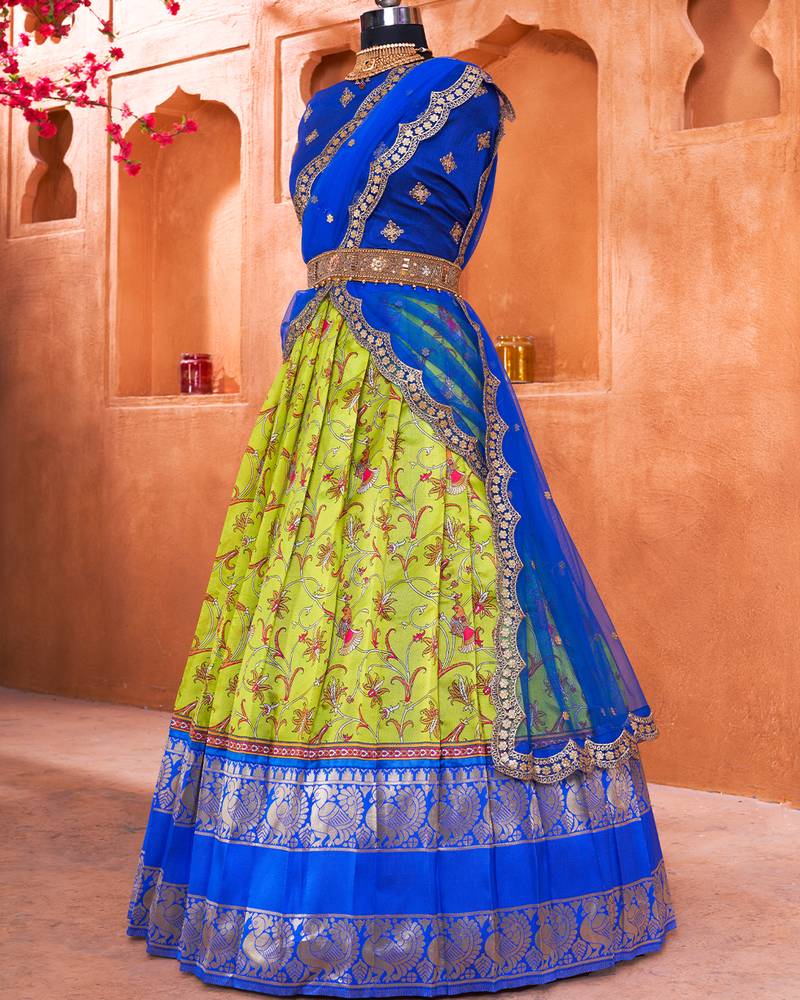 | Product Description | Kalamkari Jequrd Woven Half Saree Lehenga Fabric : Printed Silk Blend Jacquard