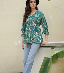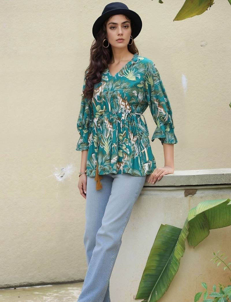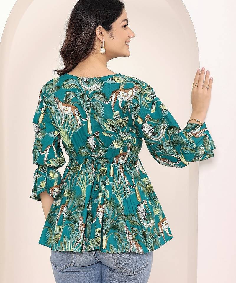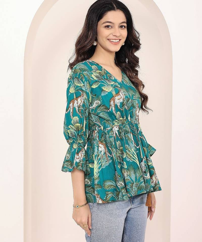 Product Name | Navy Blue Tropical Print Angrakha Style Cotton Kurta Top | |