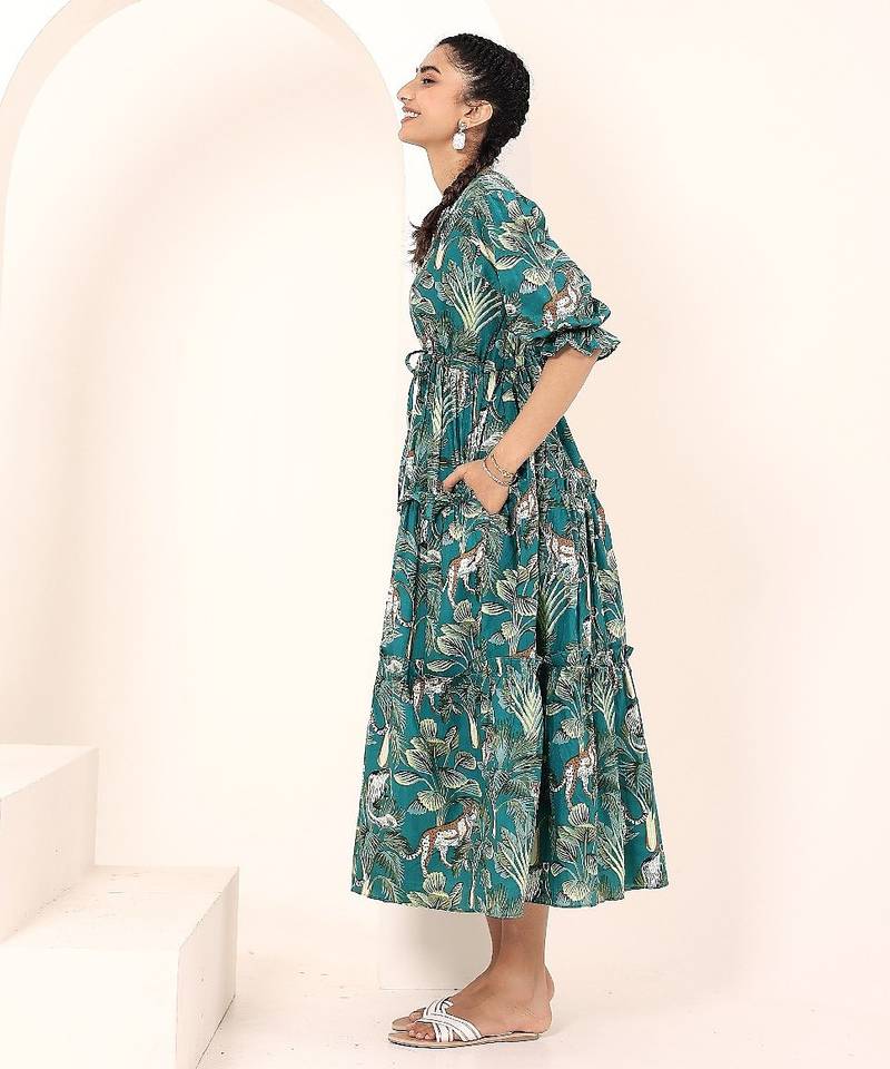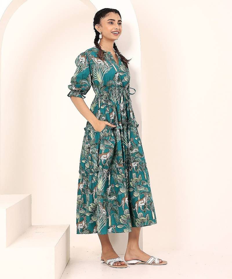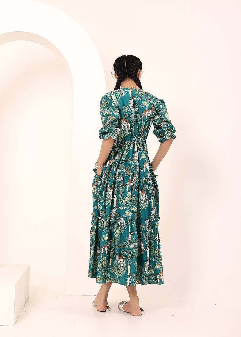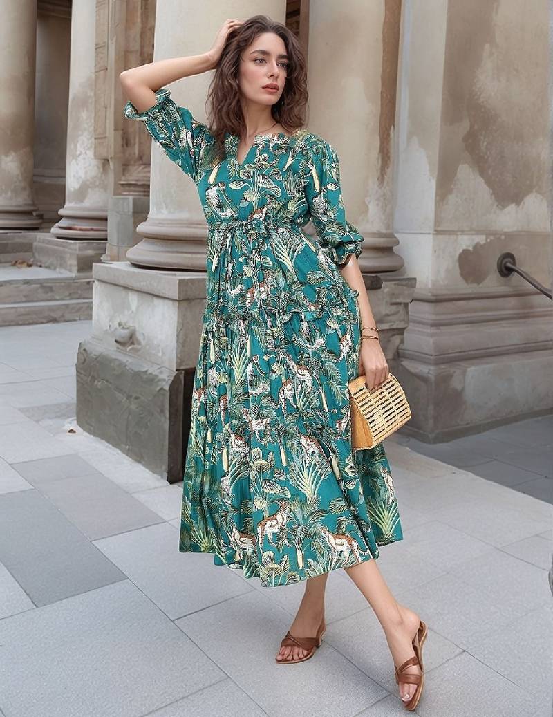 Product Description | Stylish Tropical Printed Dress With An Adjustable Drawstring Waist