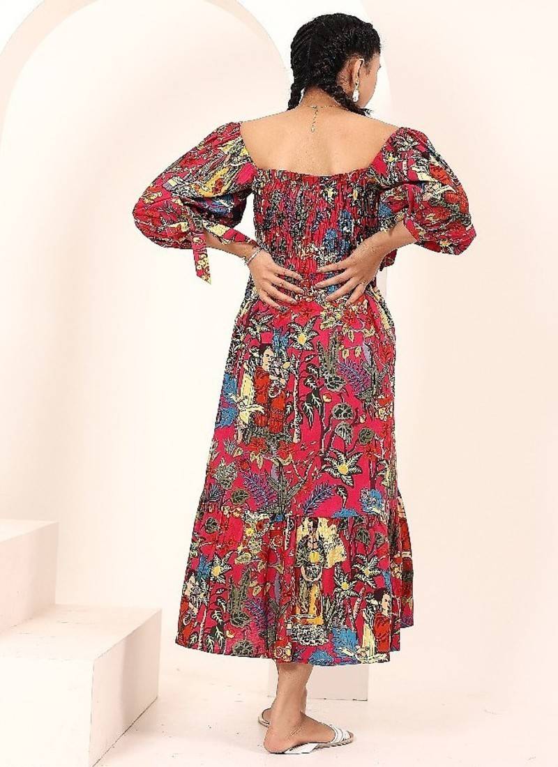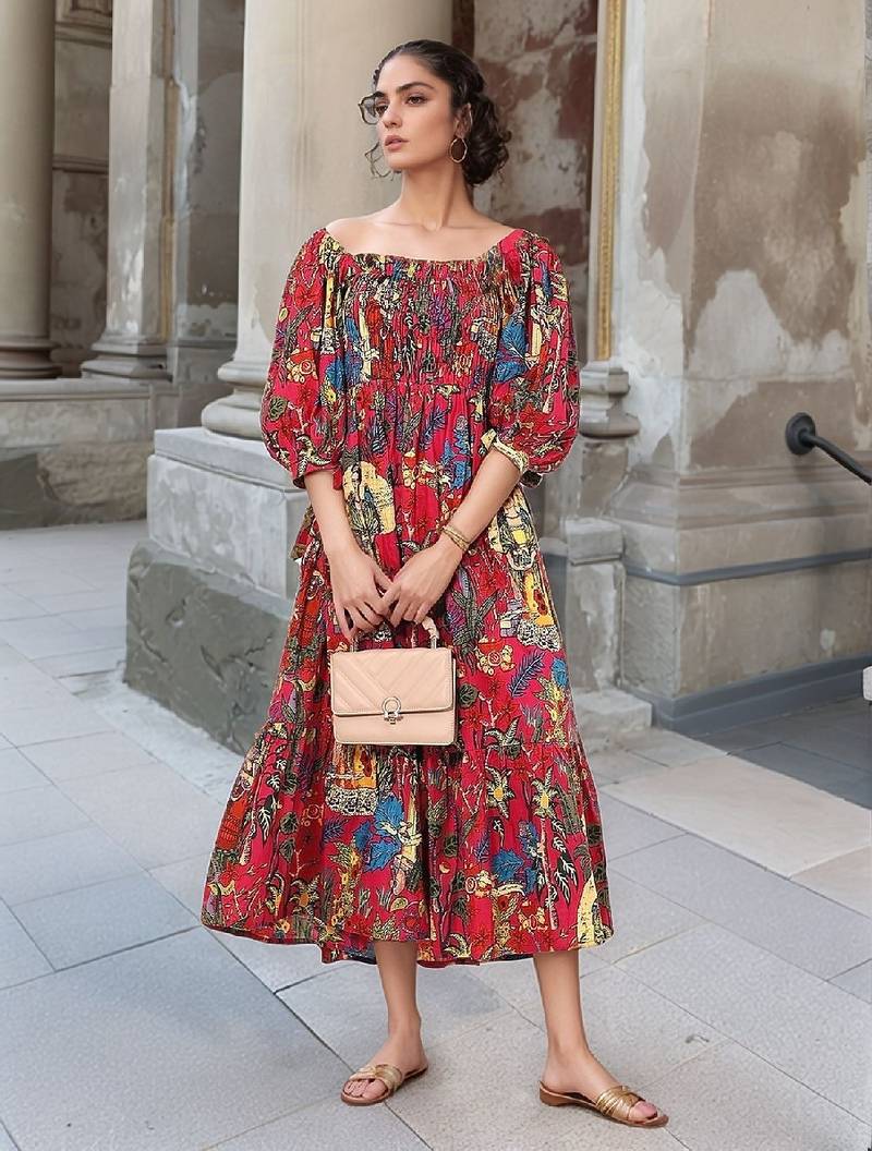 Product Description | Stylish Off Shoulder Midi Dress With A Smocked Bodice For A Flattering Fit