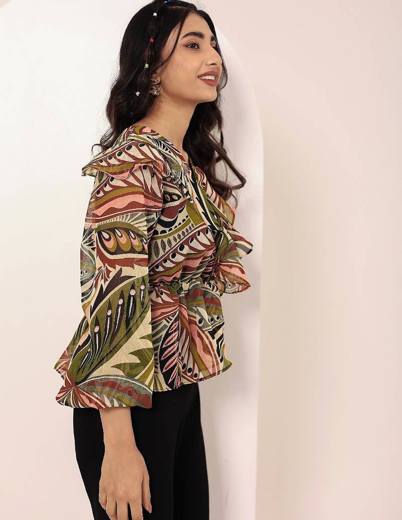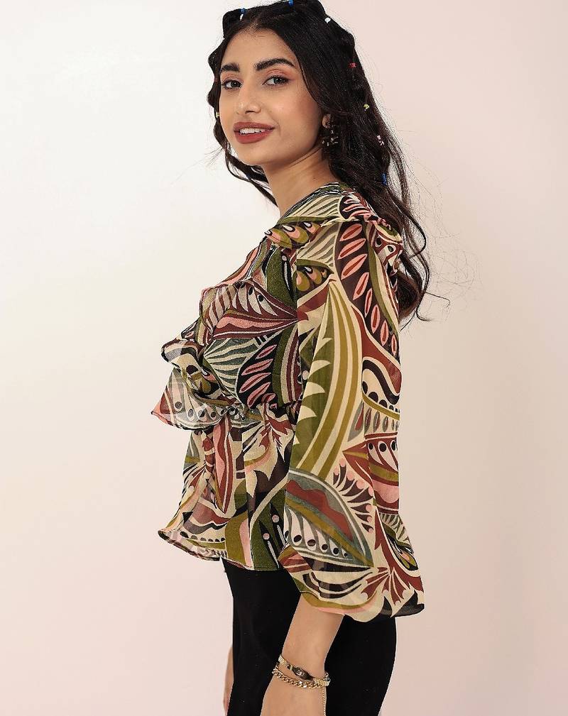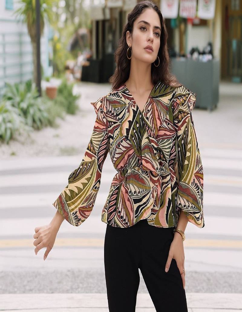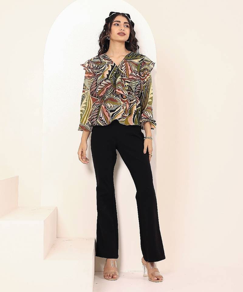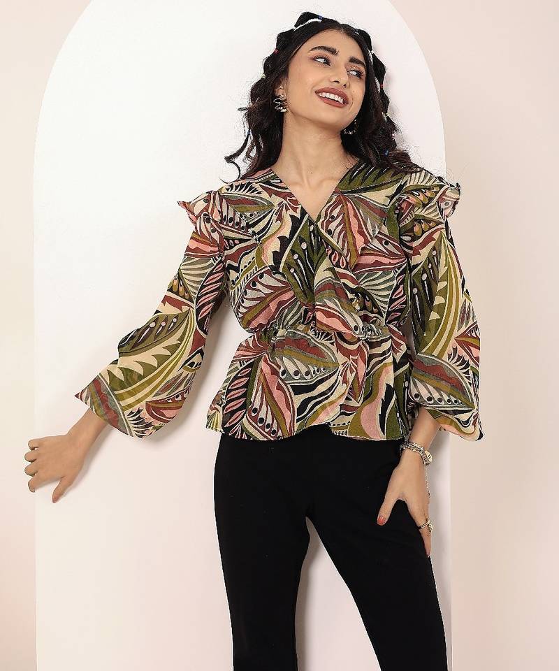 Product Name | Navy Blue Tropical Print Angrakha Style Cotton Kurta Top | |