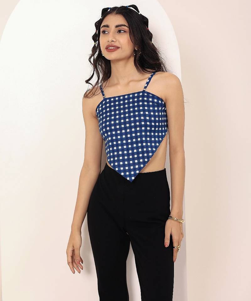 Product Name | Navy Blue Tropical Print Angrakha Style Cotton Kurta Top | |