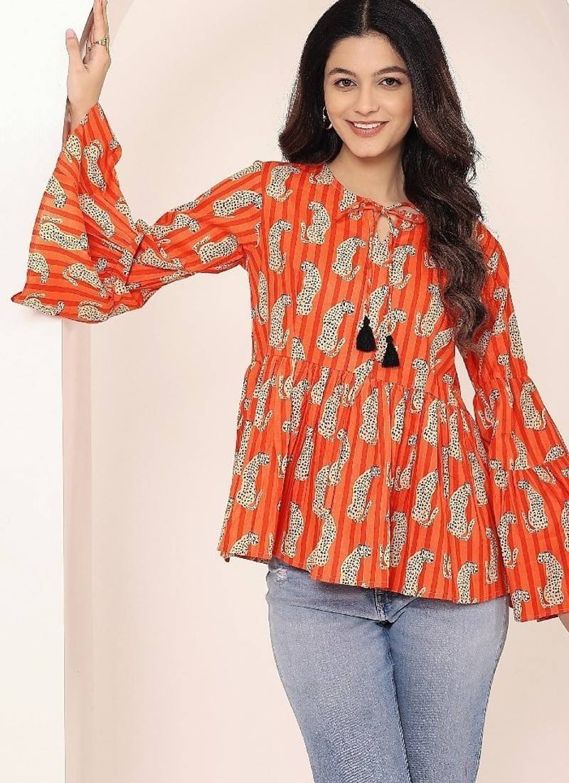 Product Name | Navy Blue Tropical Print Angrakha Style Cotton Kurta Top | |