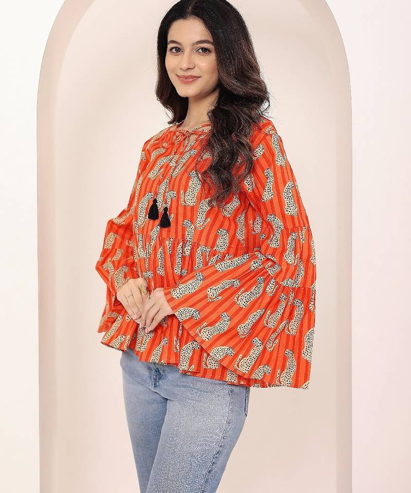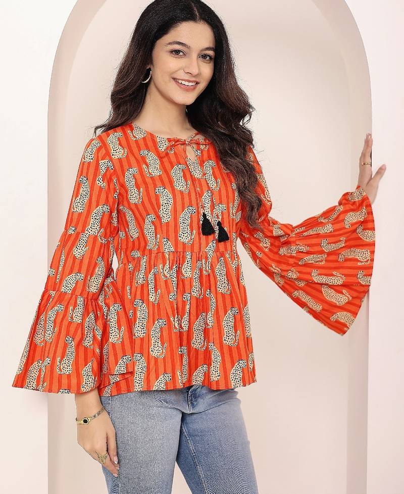 Product Description | Trendy Peplum Design With Bell Sleeves For A Stylish And Elegant Look